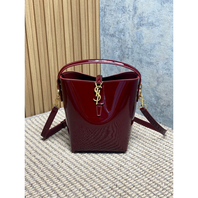 Saint Laurent Le 37 Mini Bucket Bag In Patent Leather Burgundy