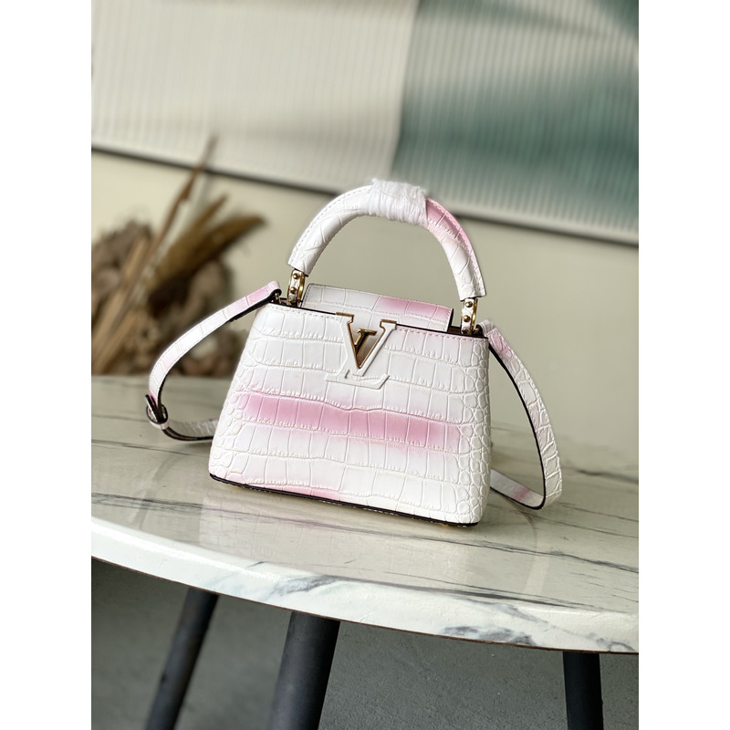 Louis Vuitton Capucines Mini Ombré Crocodile Handbag In Pink And White