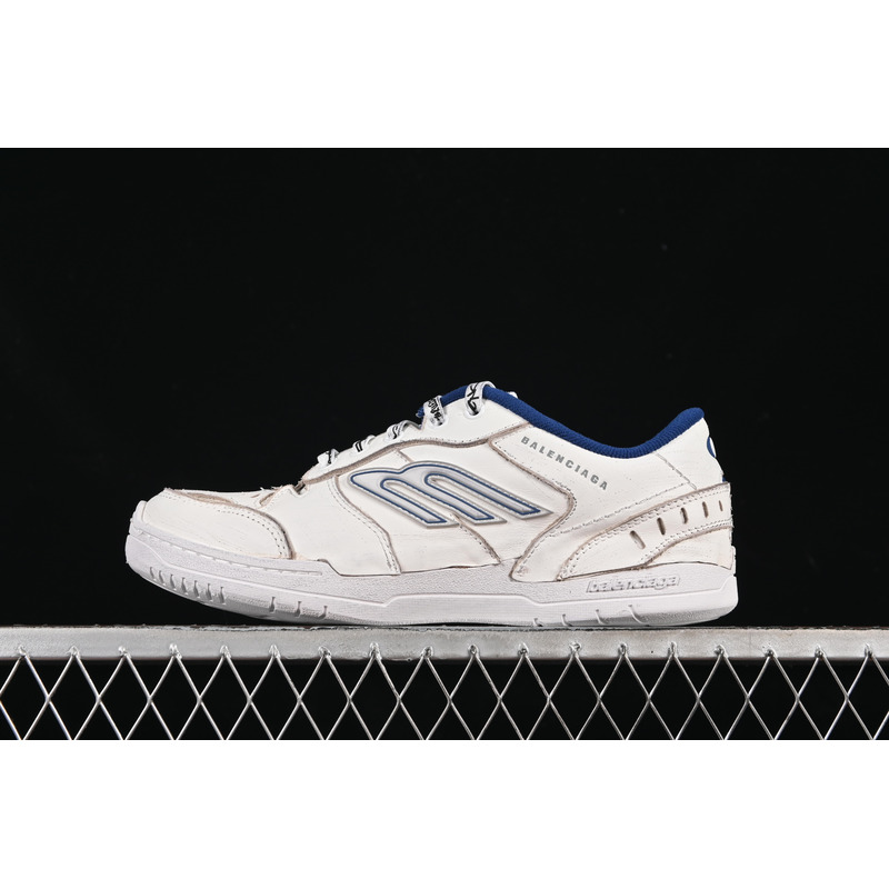 Balenciaga Hamptons Medium Worn-Out Sneaker In White/Blue