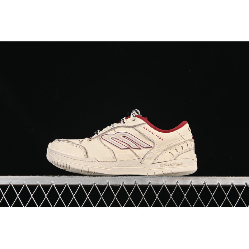 Balenciaga Hamptons Medium Worn-Out Sneaker In Off White/Red