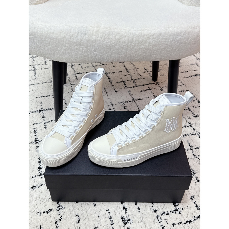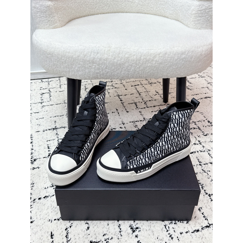 Amiri Court Hi Sneakers In Black And White With All Over Logo