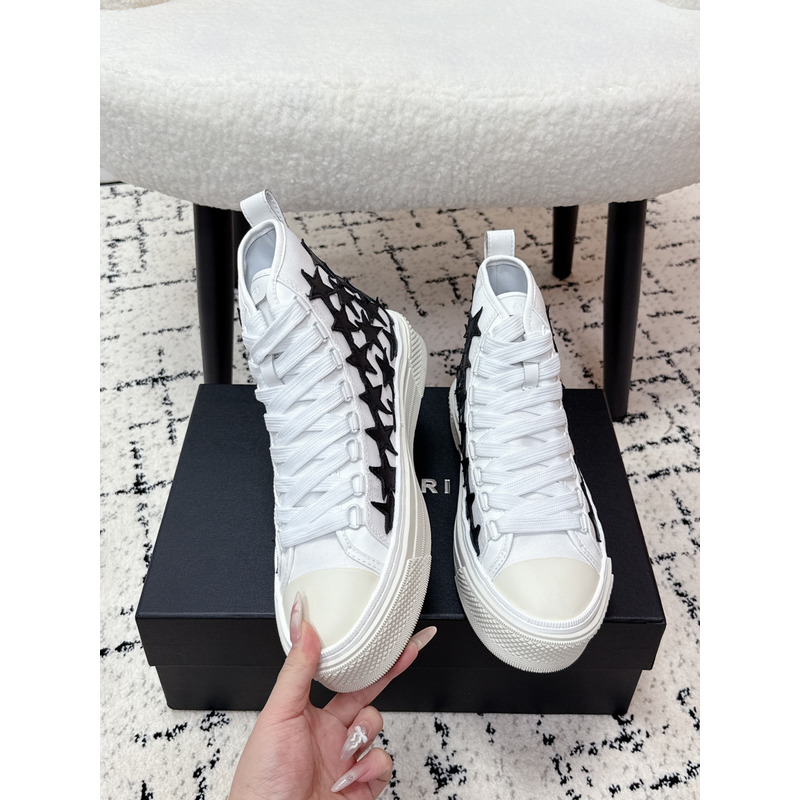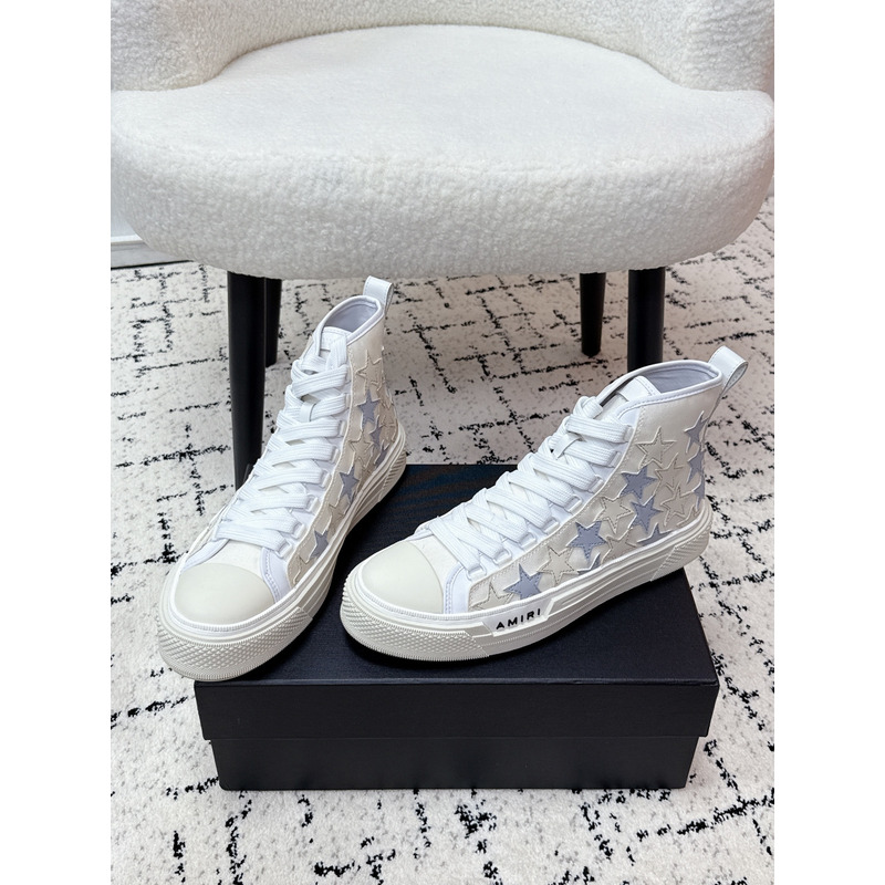 Amiri Stars Court High-Top Sneakers In White And Grey