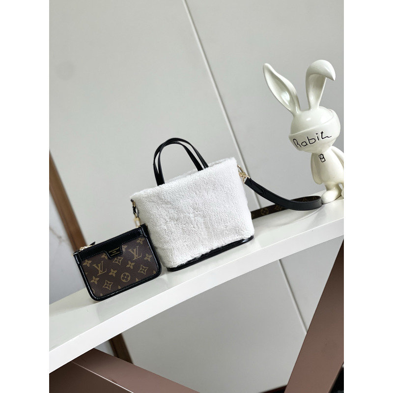 Louis Vuitton Neverfull Bandoulière Inside Out BB Shearling White