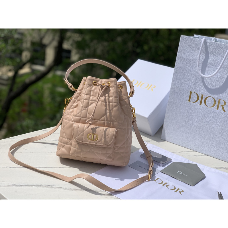 Dior Small Dior Caro Bucket Bag Leather Blush Pink