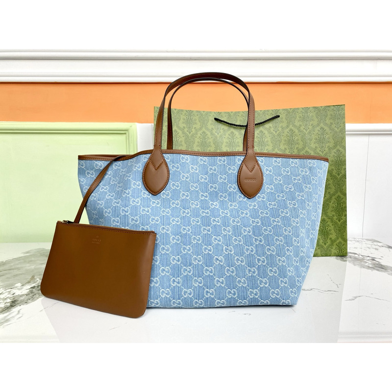 Gucci Totissima Large Tote Bag In Blue And White GG Denim