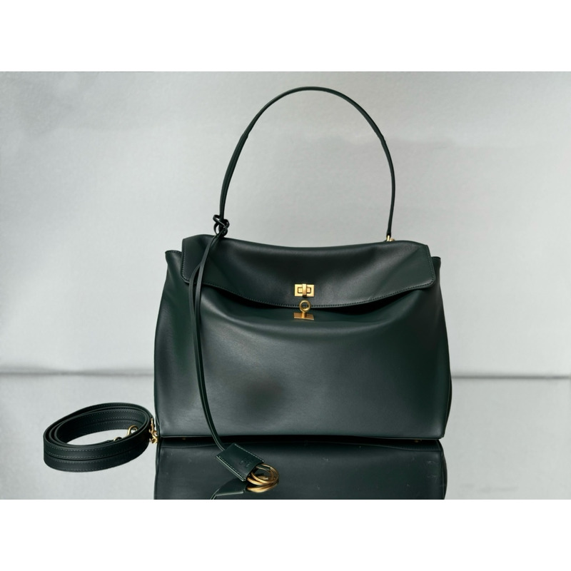 Balenciaga Rodeo Handbag Large In Dark Green Leather