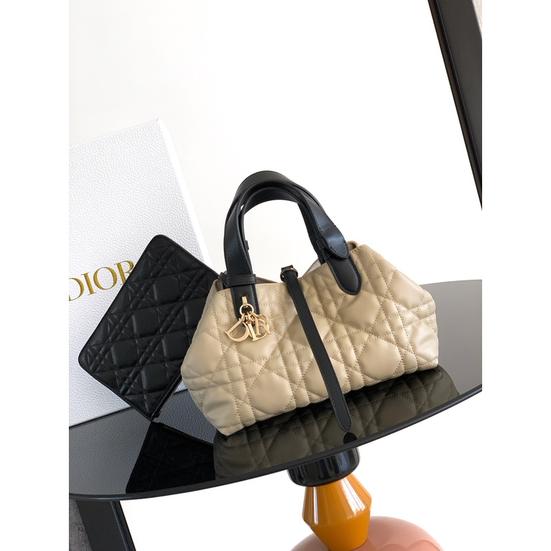 Dior Small Dior Toujours Bag Rope Beige And Black Macrocannage Leather