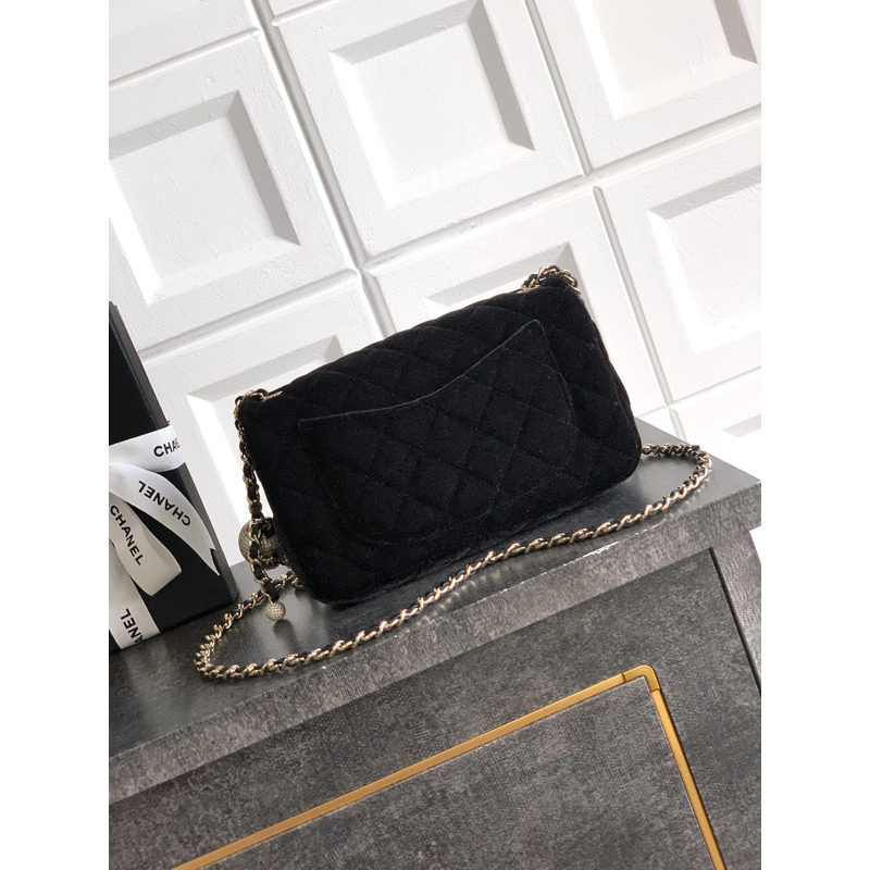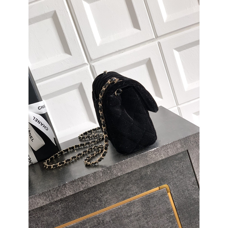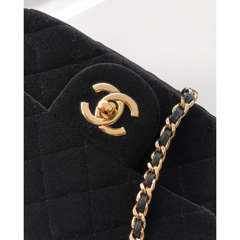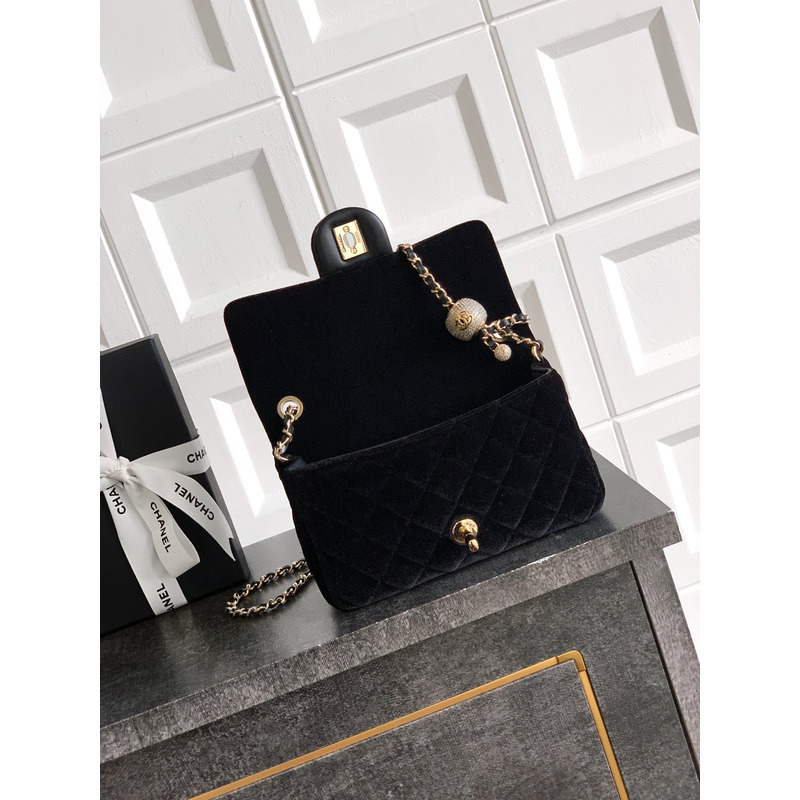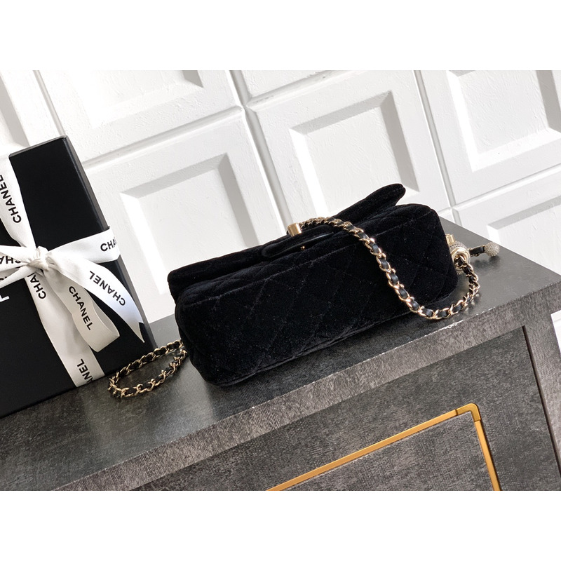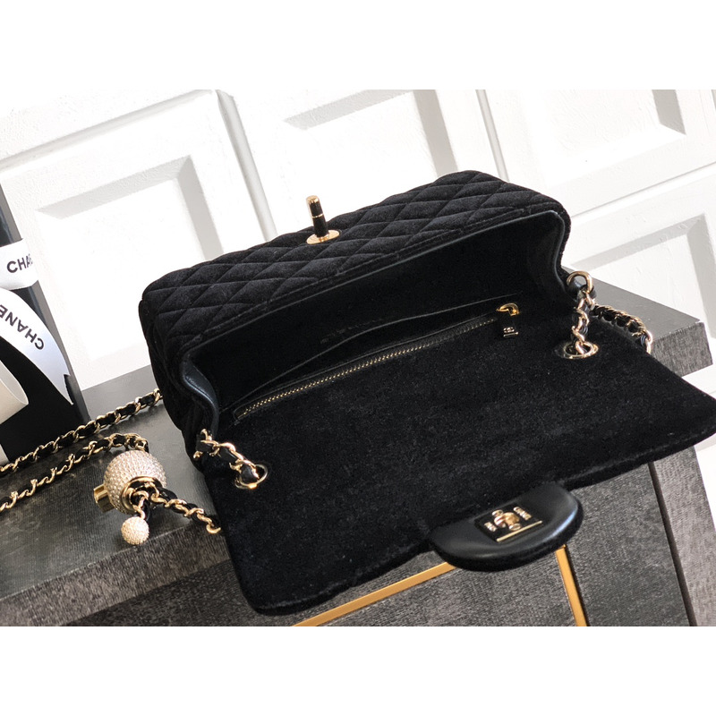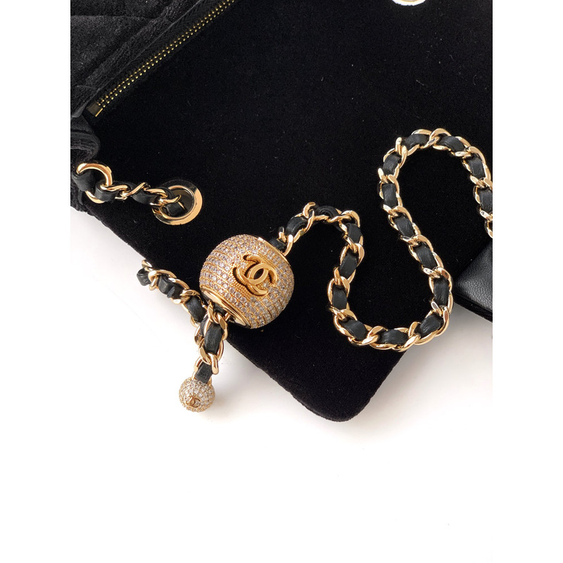 Chanel Mini Flap Bag Velvet Diamanté & Gold-tone Metal Black