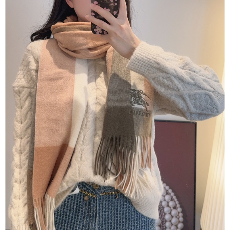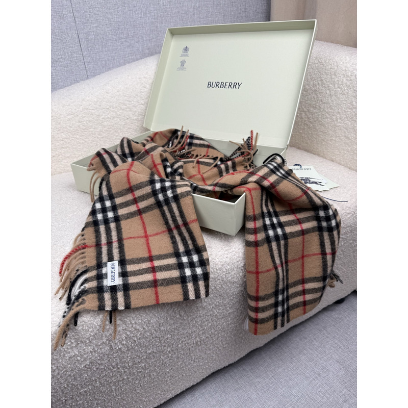 Burberry Wide Plaid Cashmere Scarf Sand Color