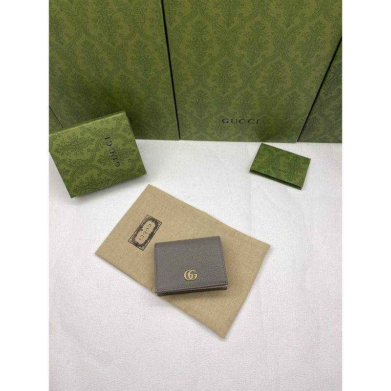 Gucci Grey Grained Leather GG Marmont Card Case Wallet