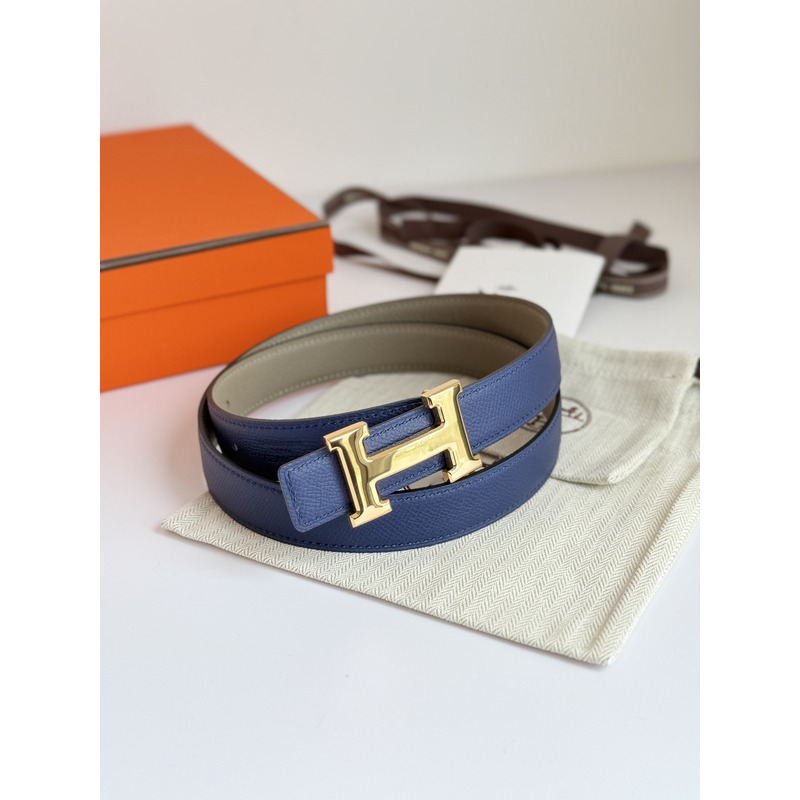 Hermès Reversible Leather Belt with H Buckle In Blue & Taupe