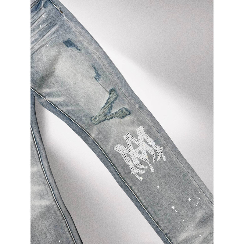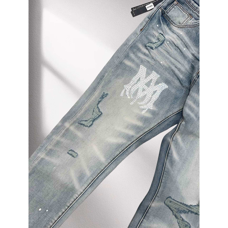 Amiri Distressed Skinny Jean In Washed Light Grey