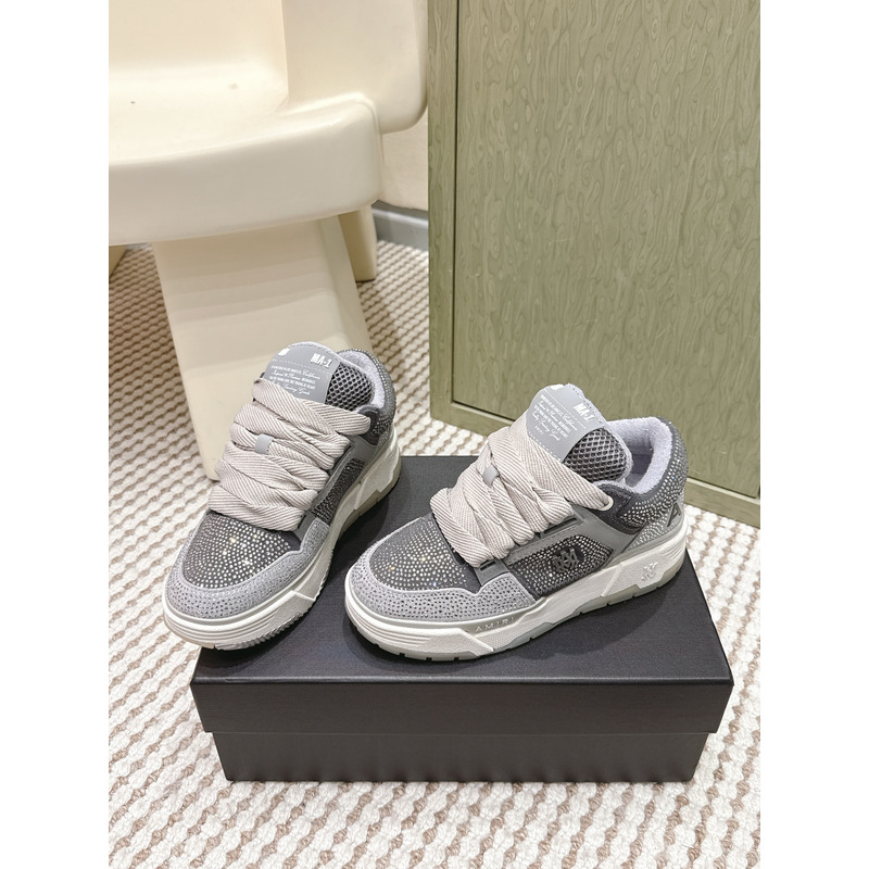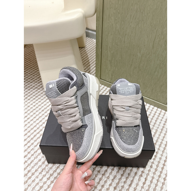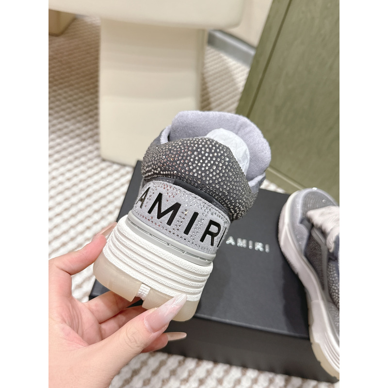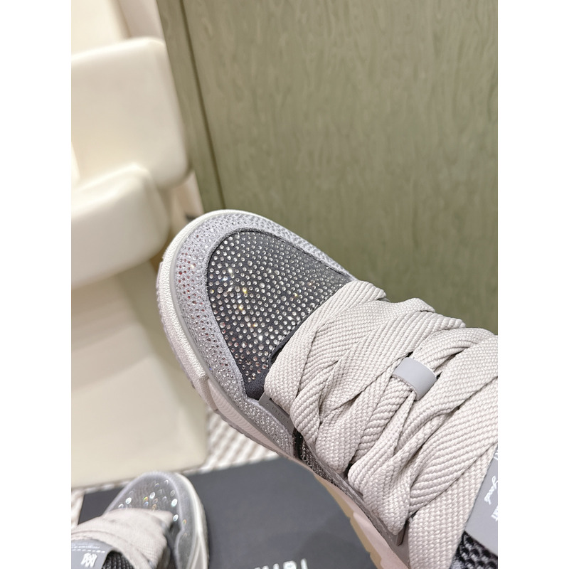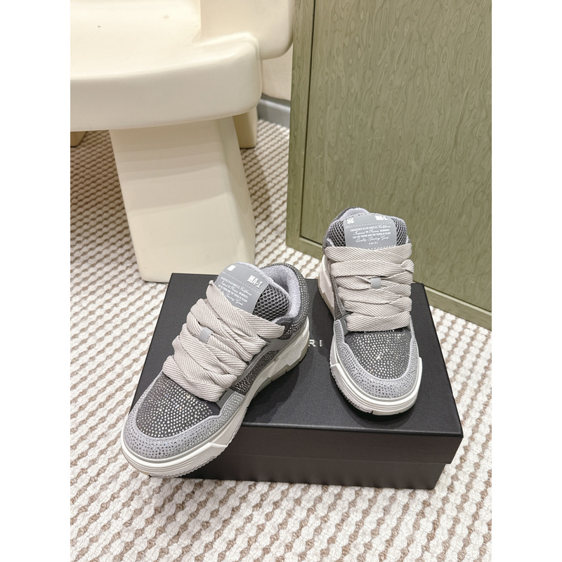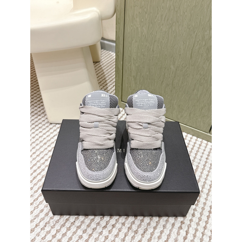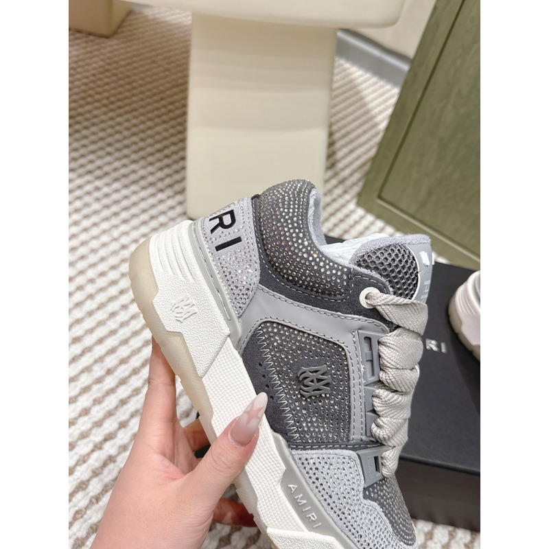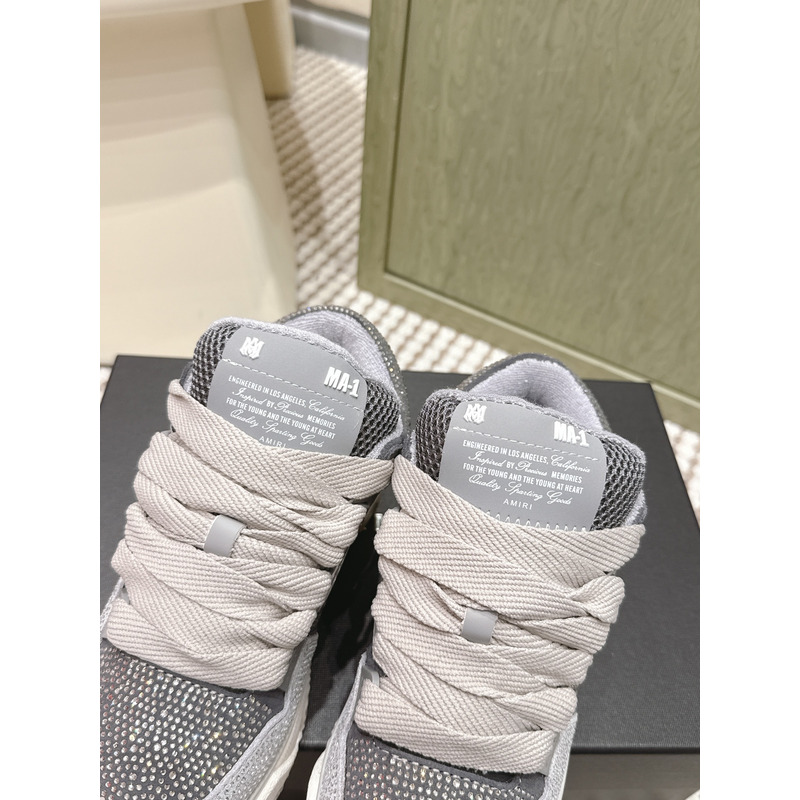 Amiri MA-1 Crystal Leather Sneakers In Light Grey