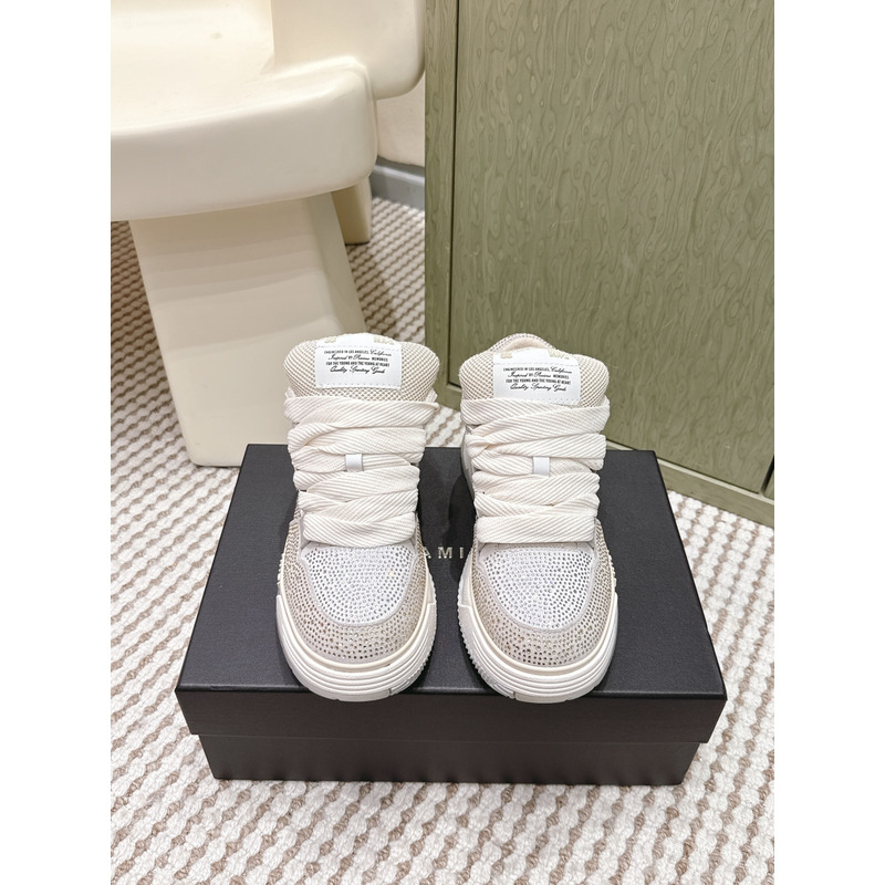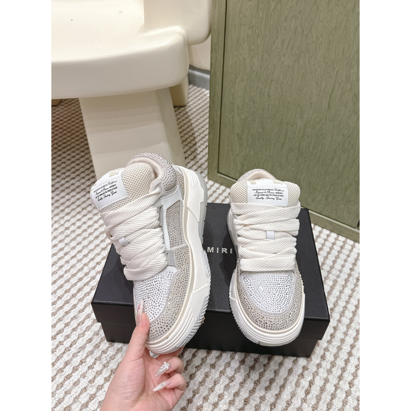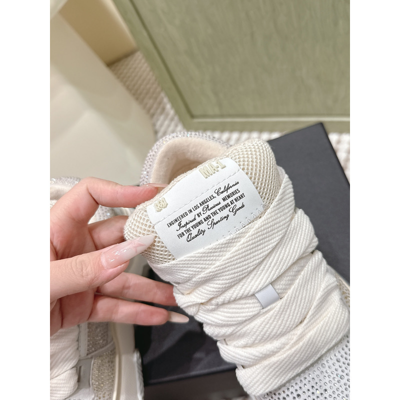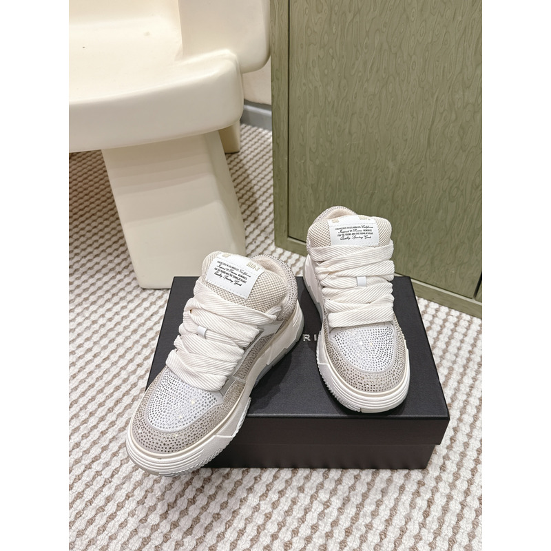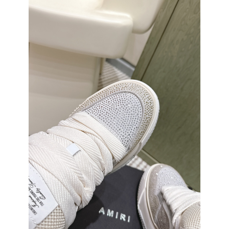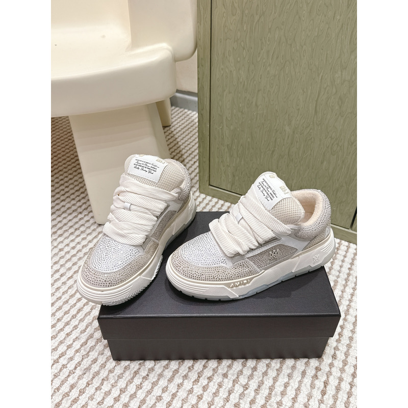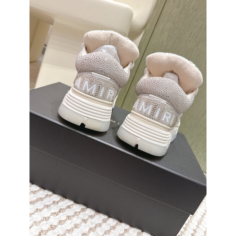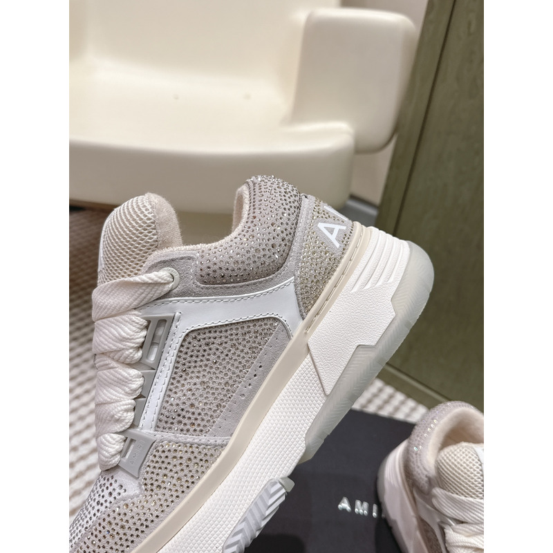 Amiri MA-1 Crystal Leather Sneakers In Light Grey & White