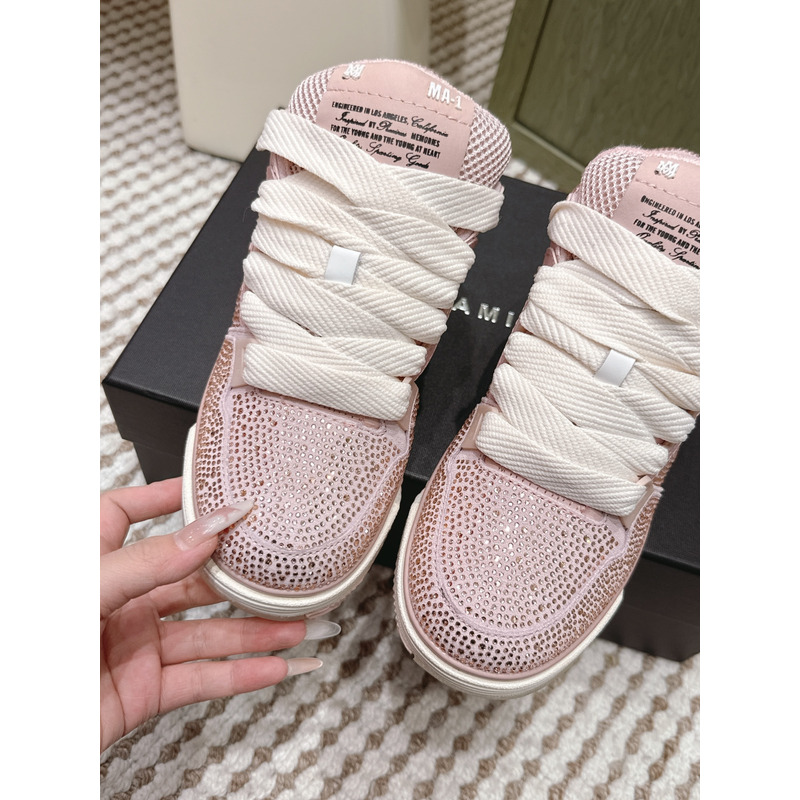 Amiri MA-1 Crystal Leather Sneakers In Light Pink