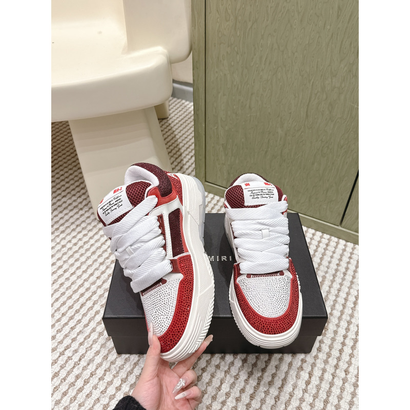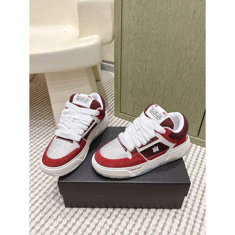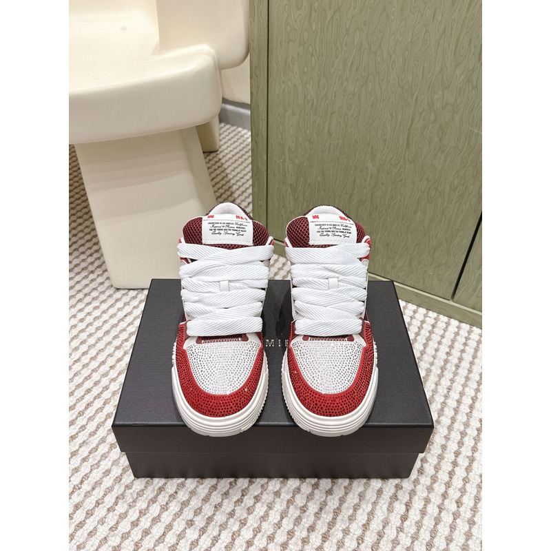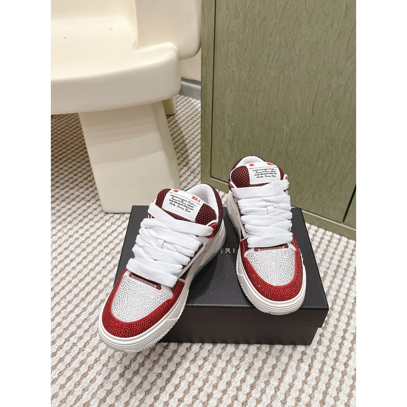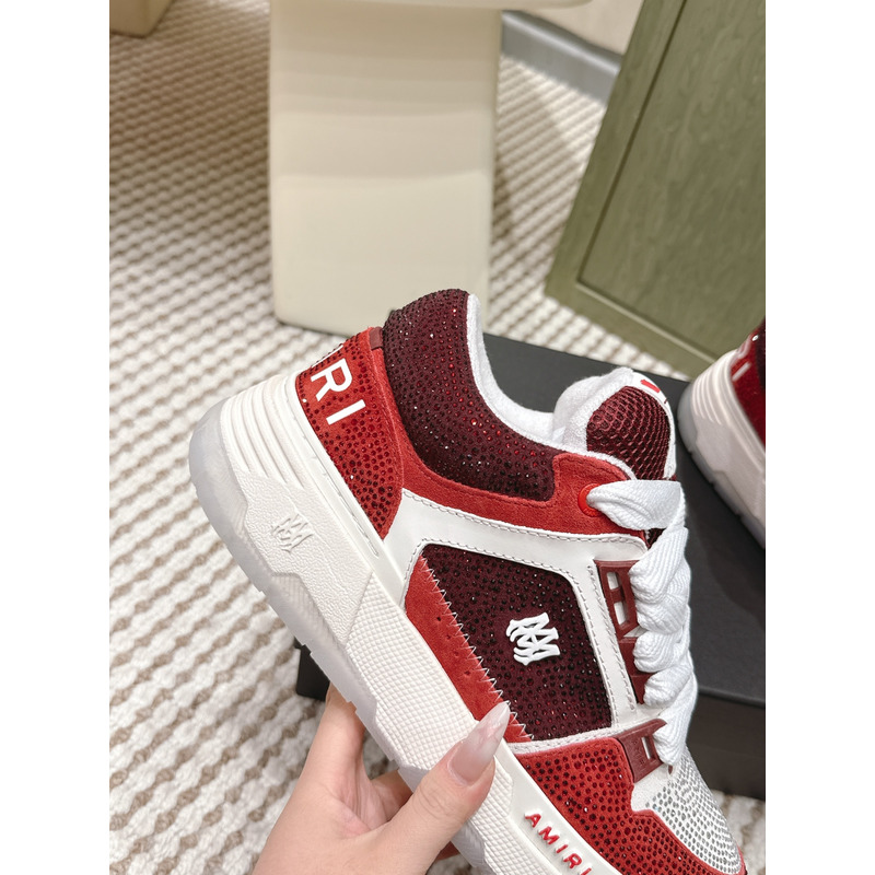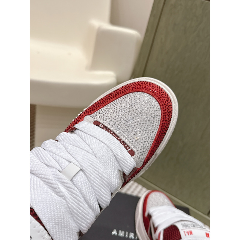 Amiri MA-1 Crystal Leather Sneakers In White & Bright Red