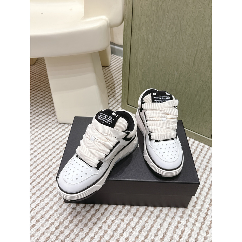 Amiri Metalli Leather Low-Top Sneakers White&Black