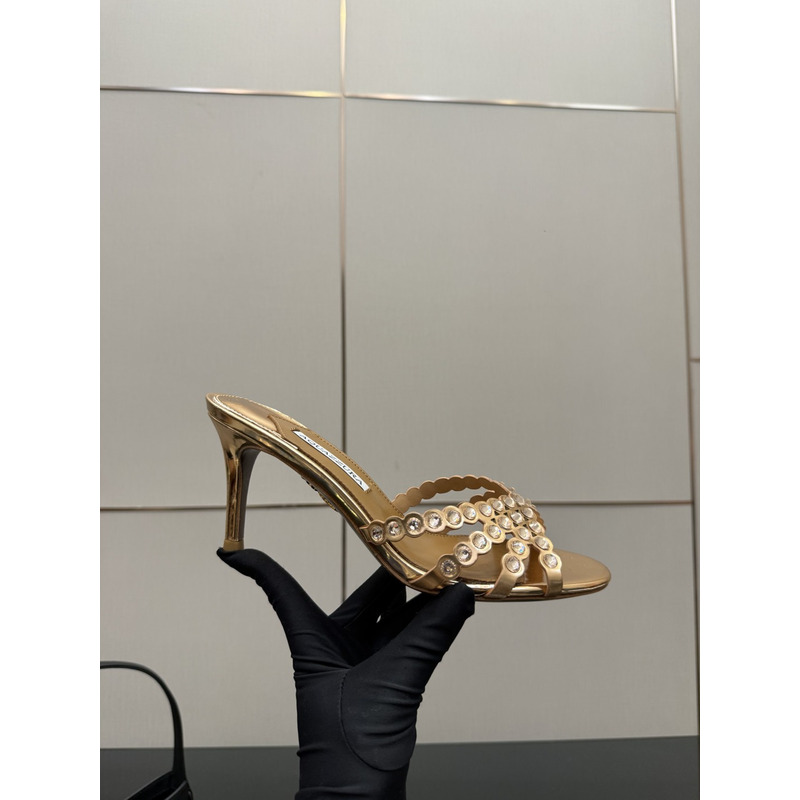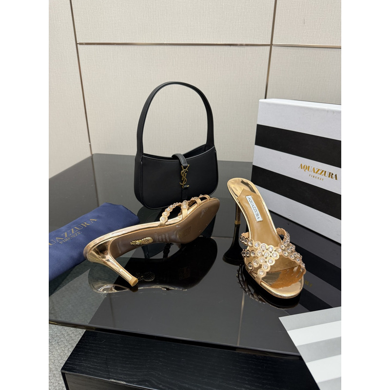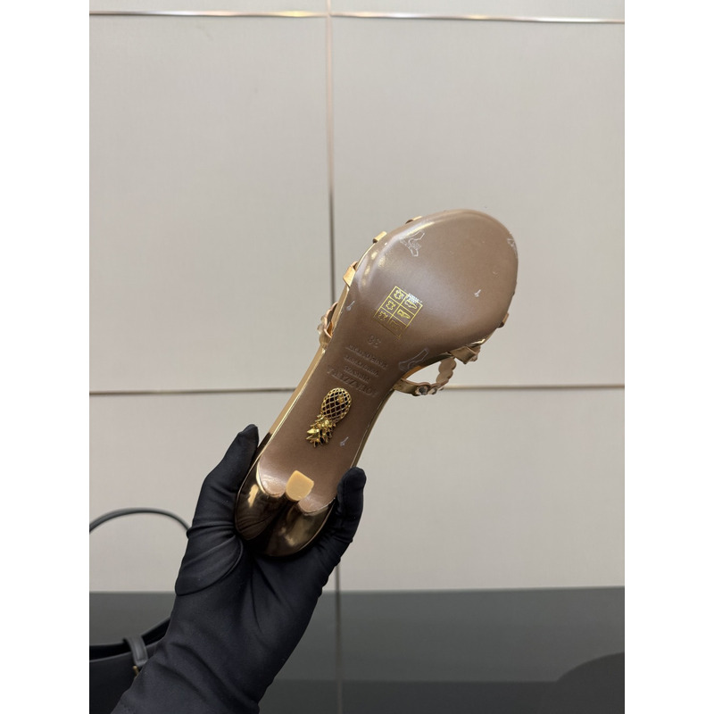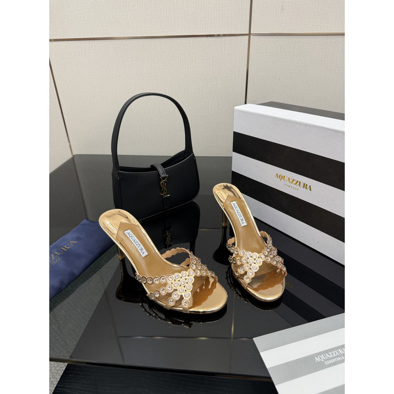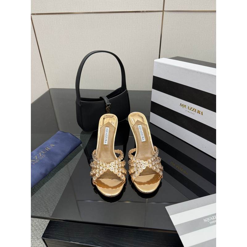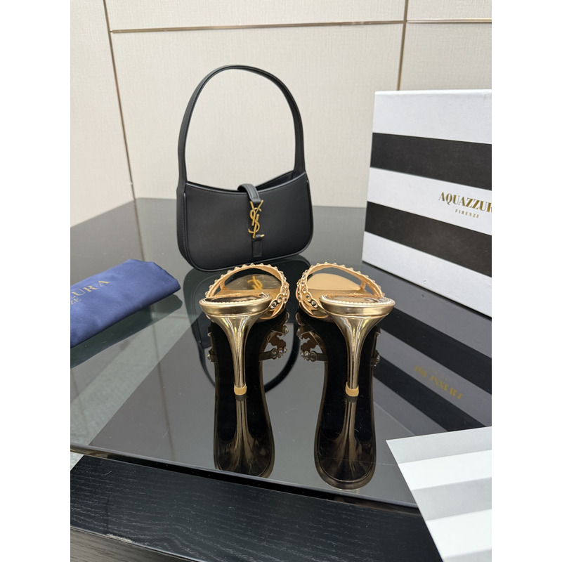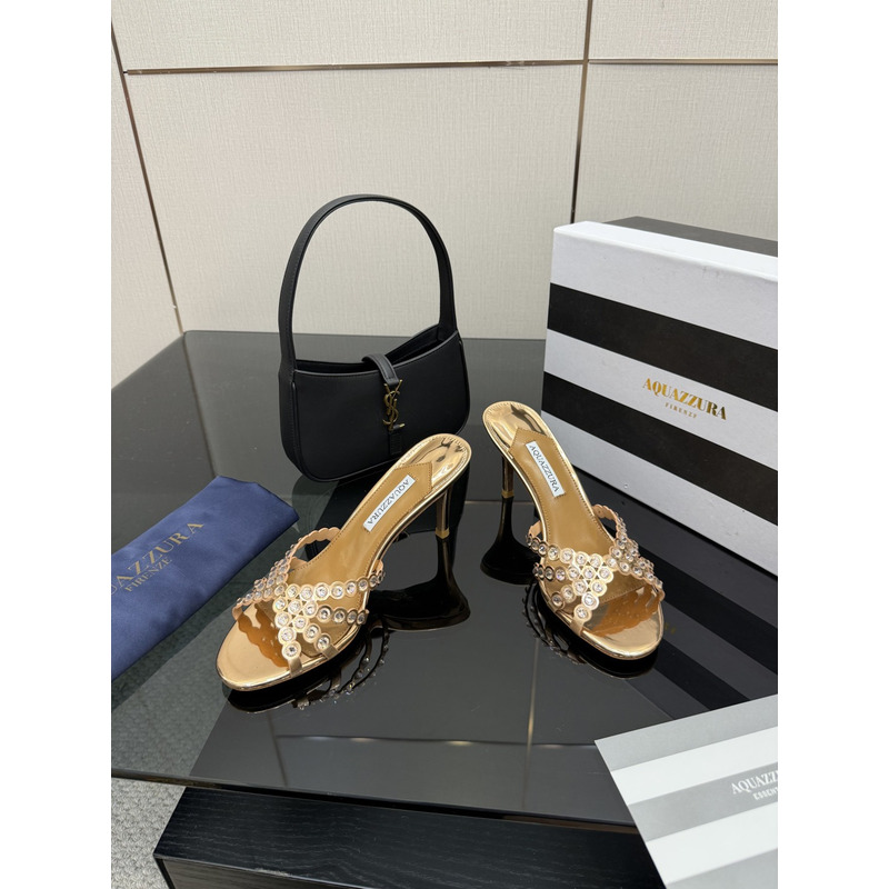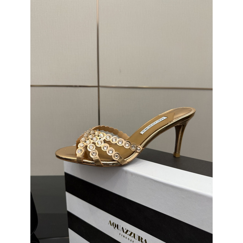 Aquazzura Crystal-Embellished Gold Laminated Mules