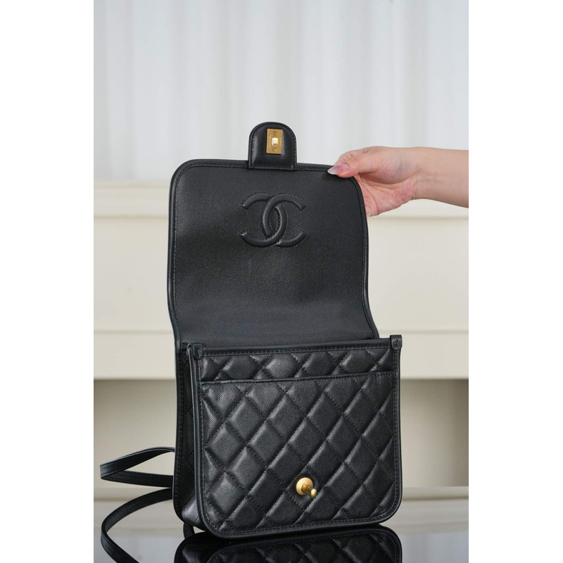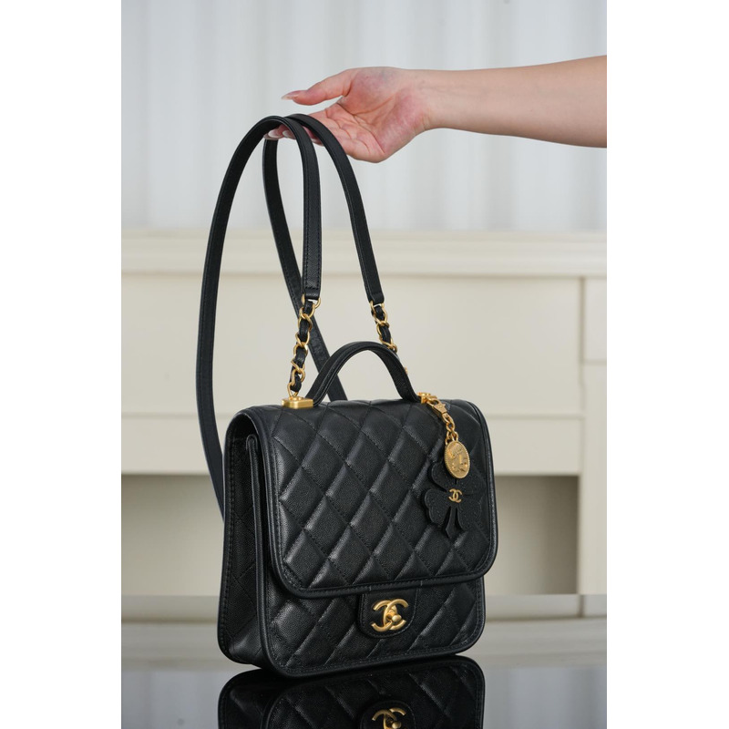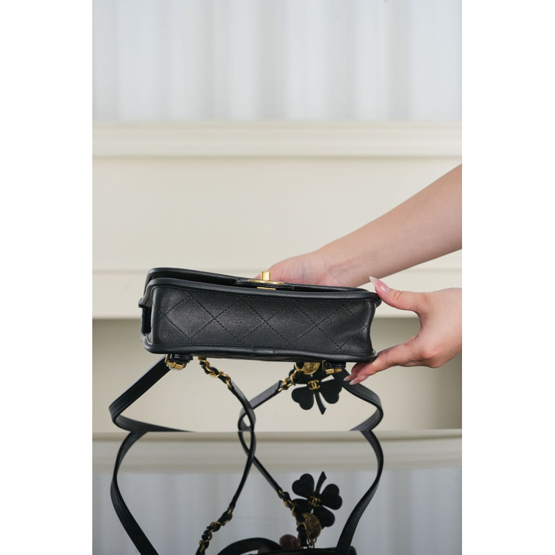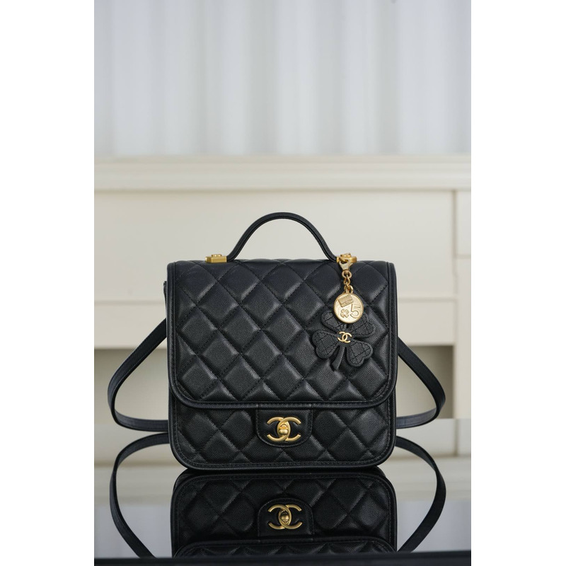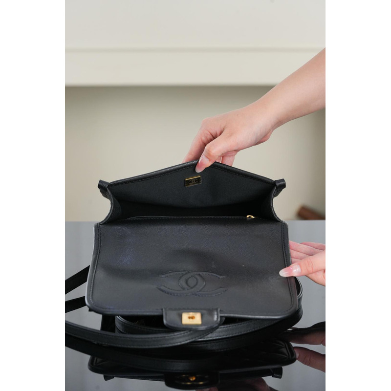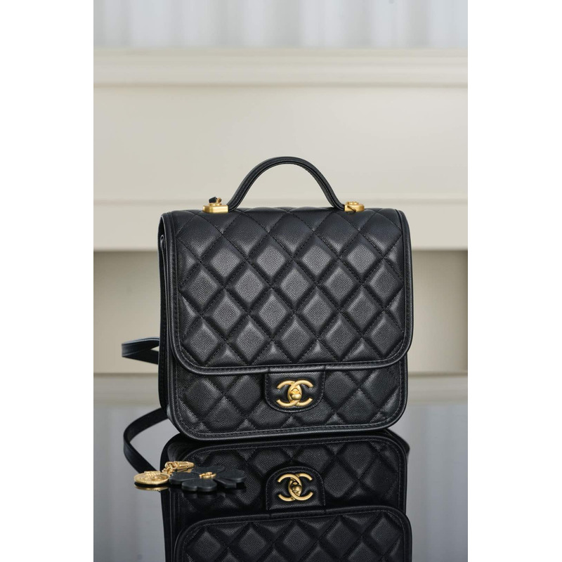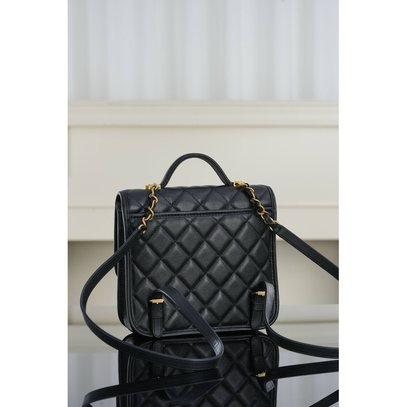Chanel Backpack Grained Shiny Calfskin & Gold-Tone Metal Black