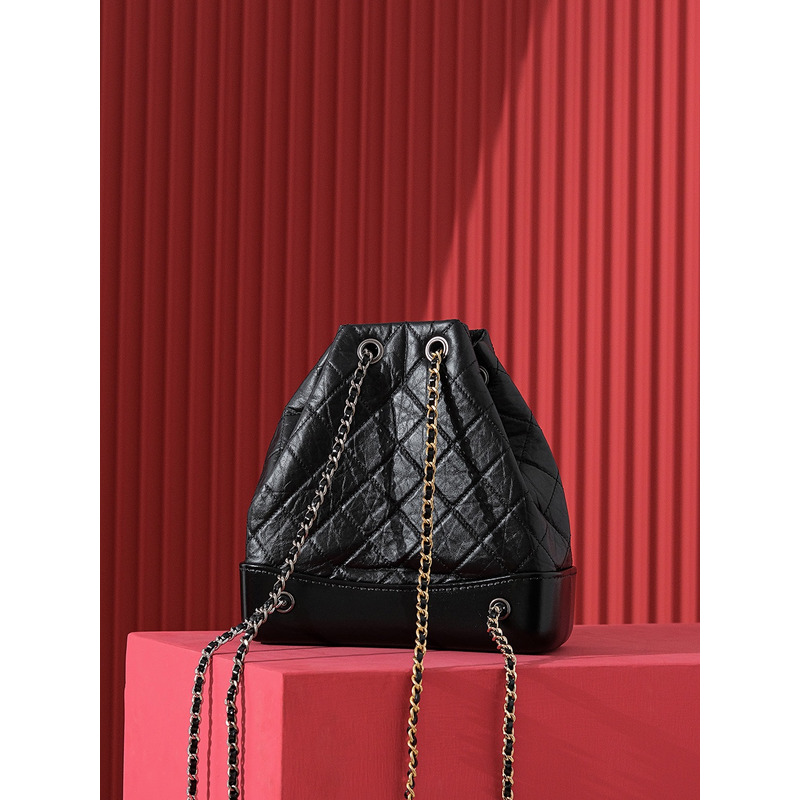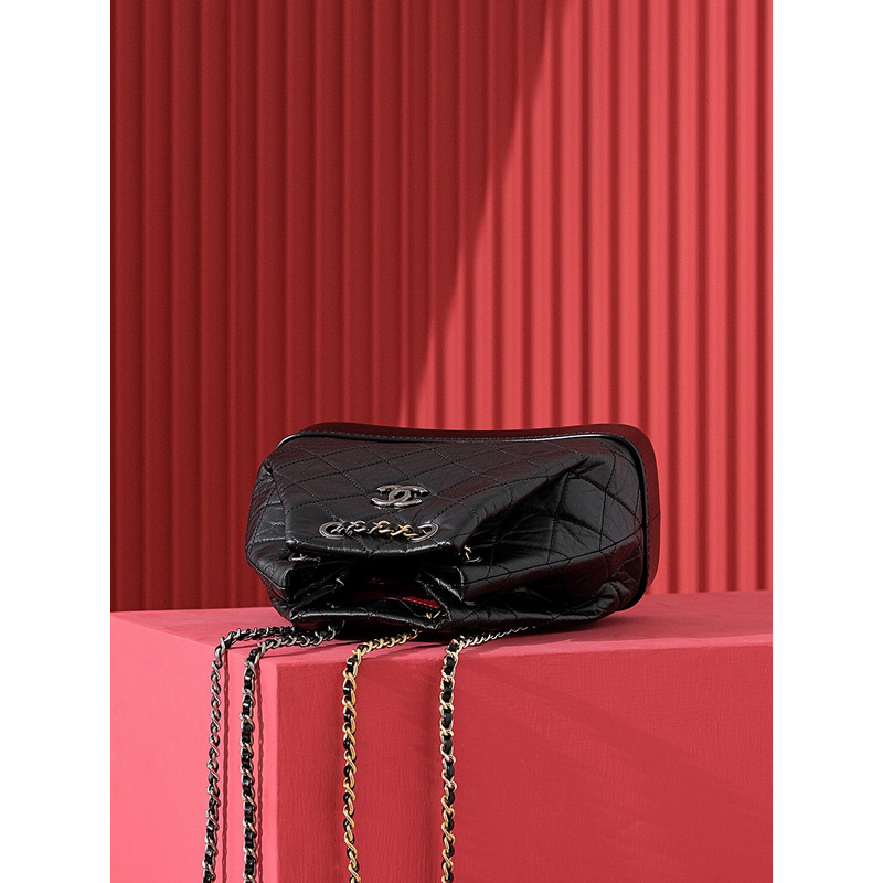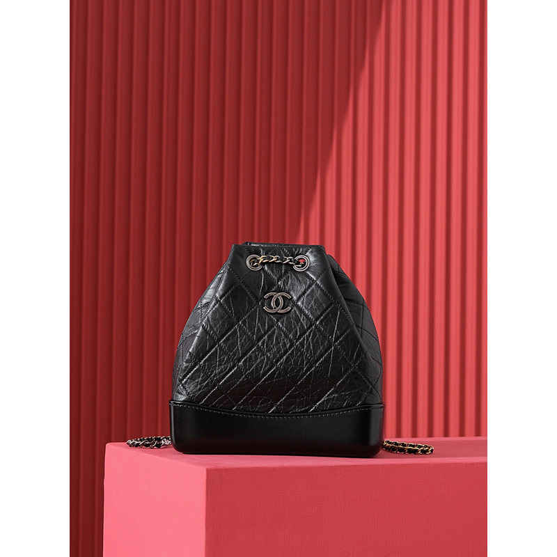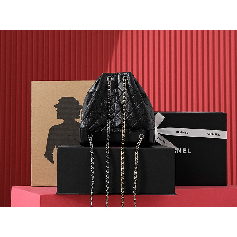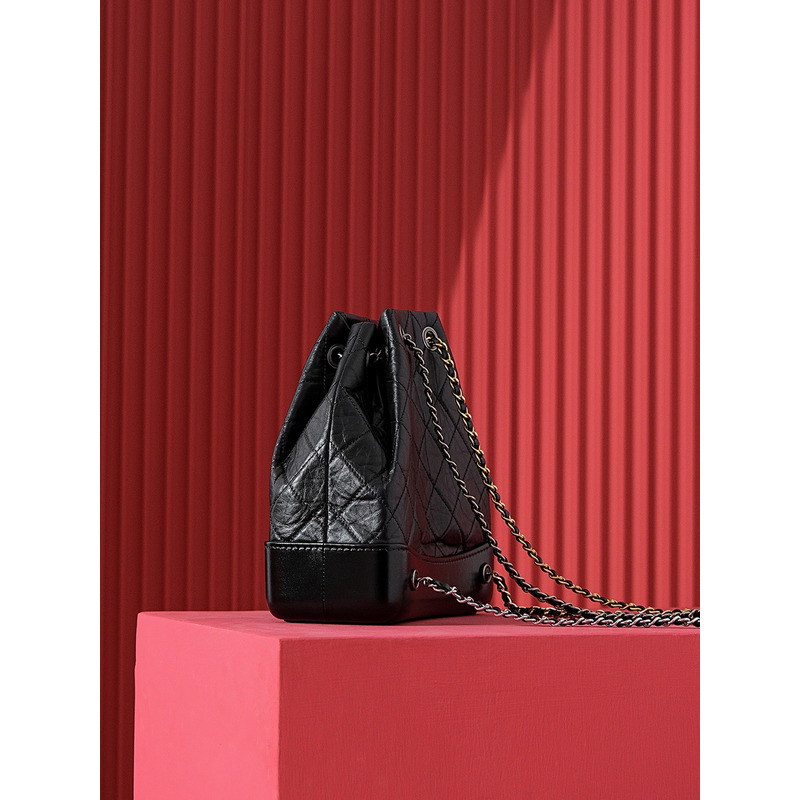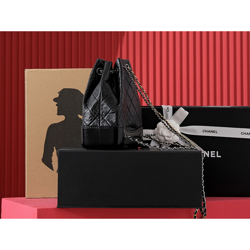 Chanel Calfskin Quilted Small Gabrielle 24K Gold Backpack Black