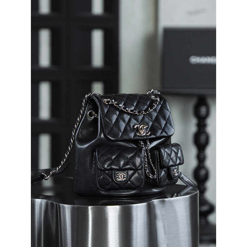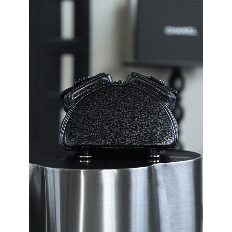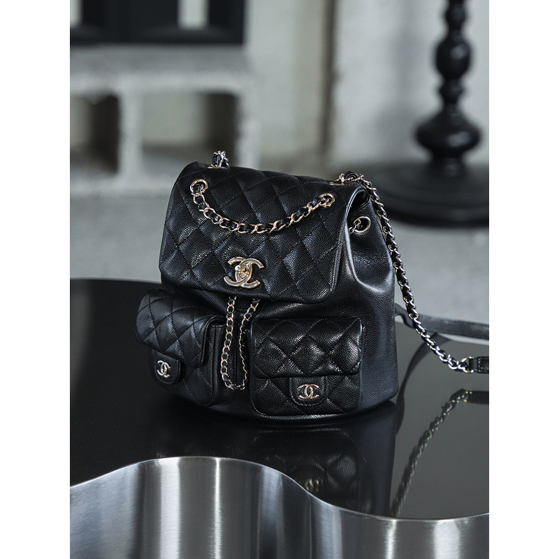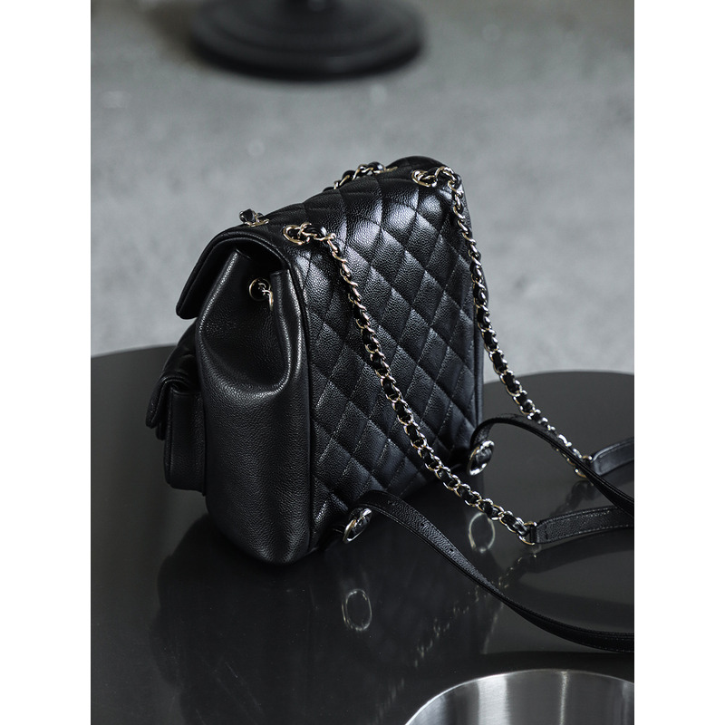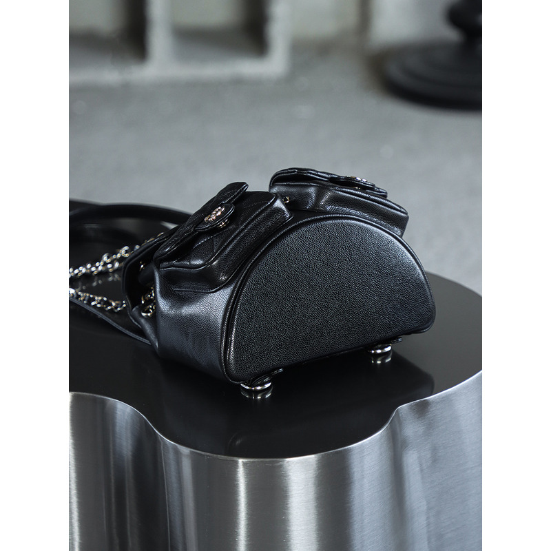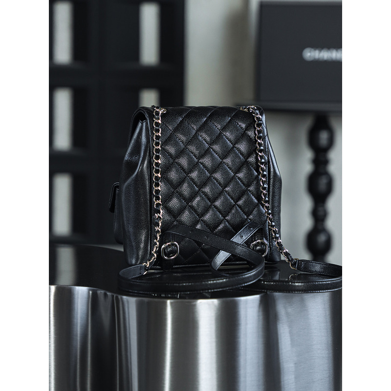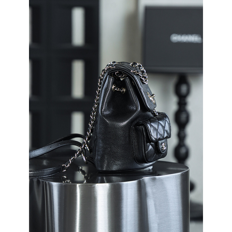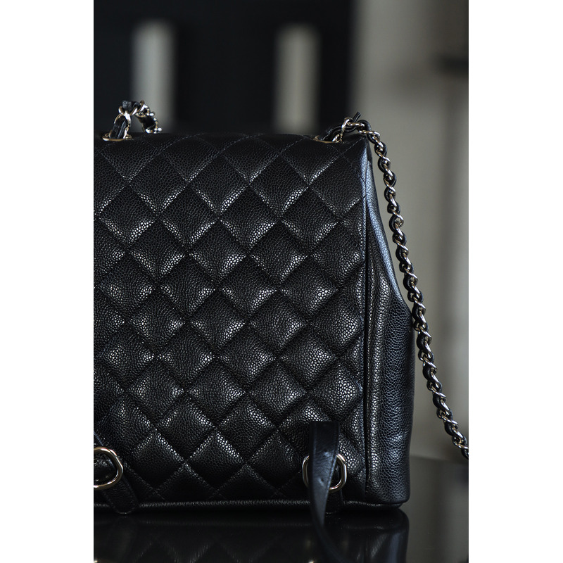 Chanel Medium Black Quilted Mini Backpack With Chain
