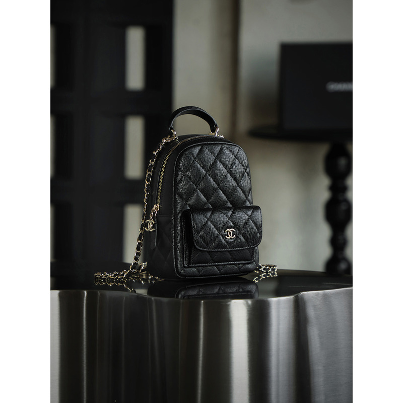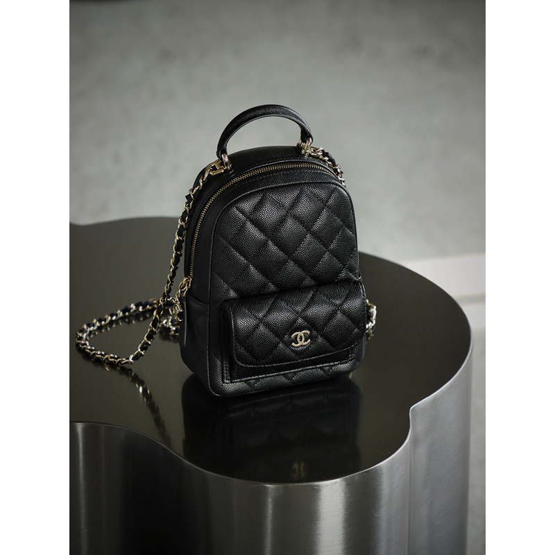 Chanel Quilted CC Mini Classic 24K Gold Backpack Black