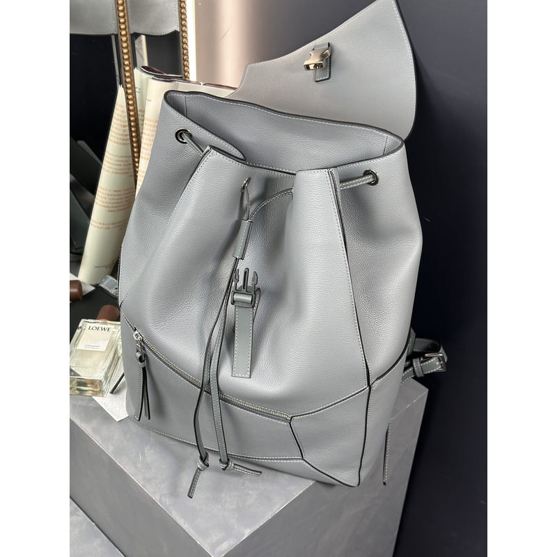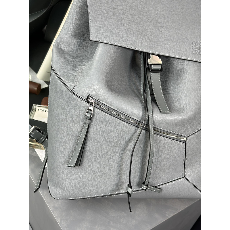 Loewe Puzzle Backpack in Soft Grained Calfskin Light Grey