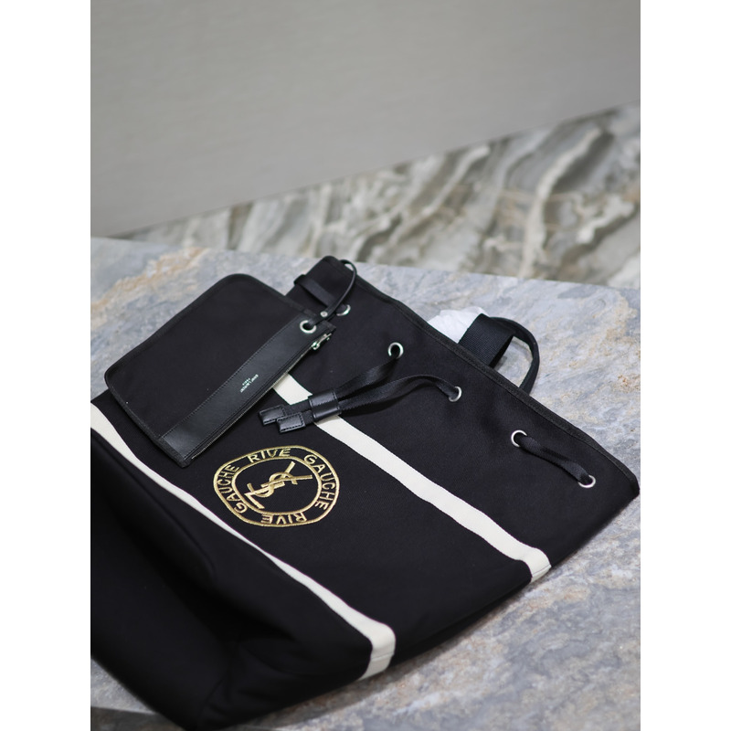 Saint Laurent Rive Gauche Embroidered Cotton Shoulder Bag