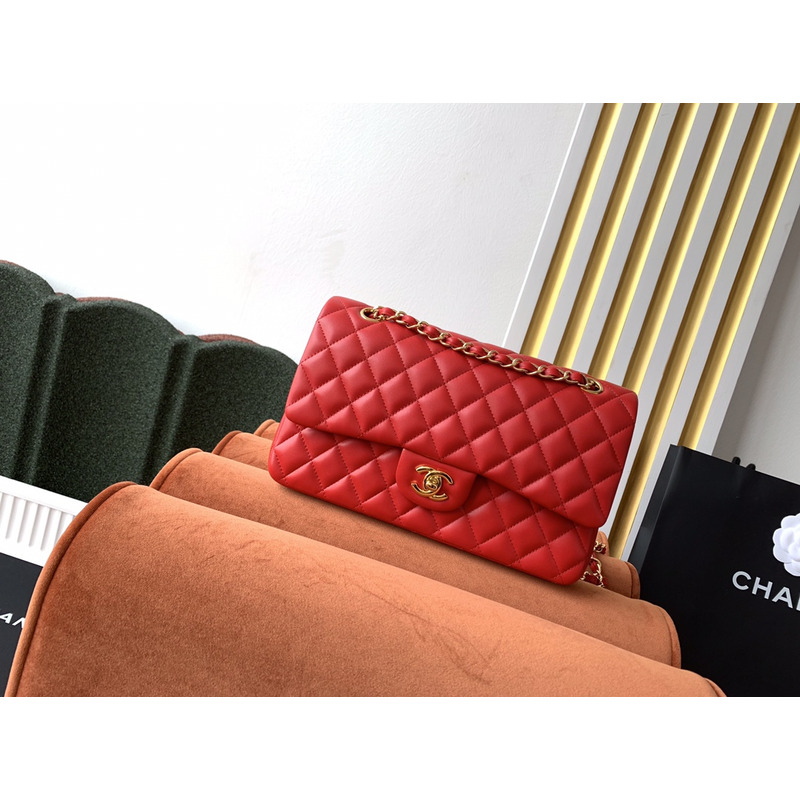 Chanel Classic Double Flap Bag With Gold-Tone Metal In Red