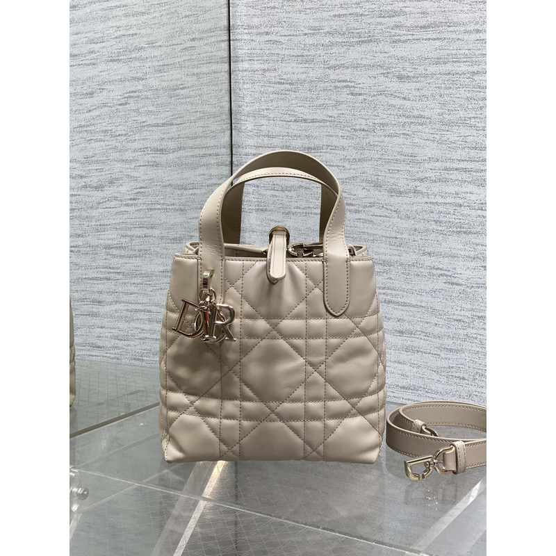 Dior Small Toujours Vertical Tote Bag Powder Beige Macrocannage Calfskin