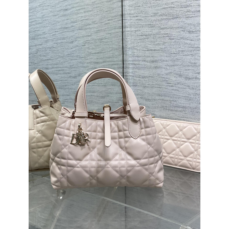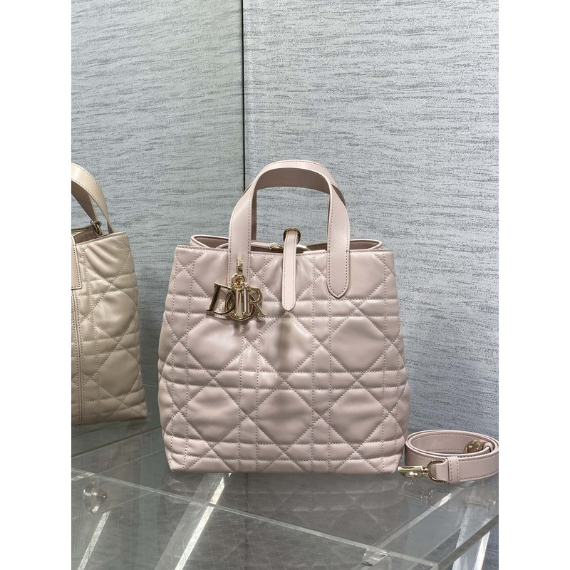 Dior Small Toujours Vertical Tote Bag Pale Pink Macrocannage Calfskin