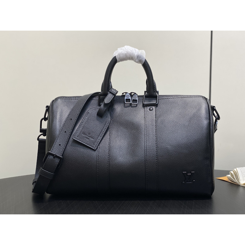 Louis Vuitton Keepall Bandoulière 35 In Aerogram Black Leather