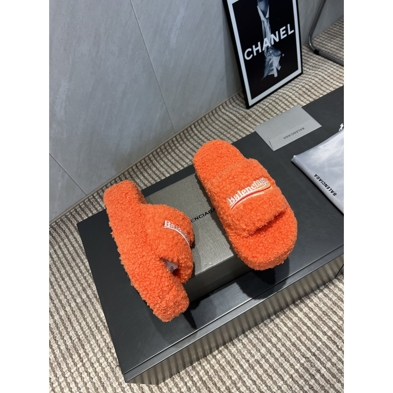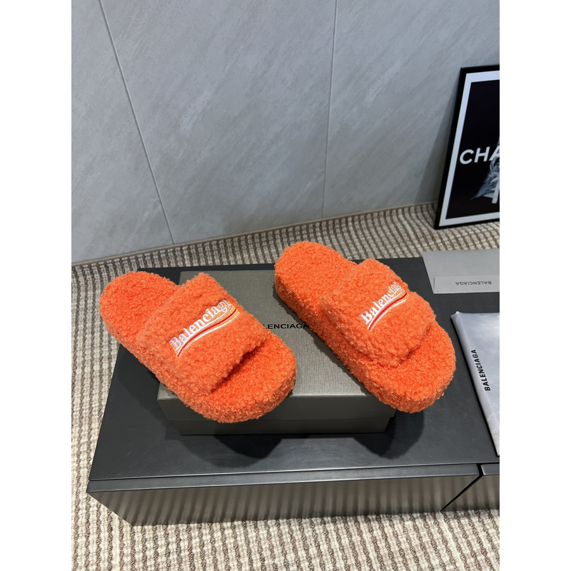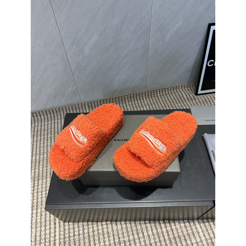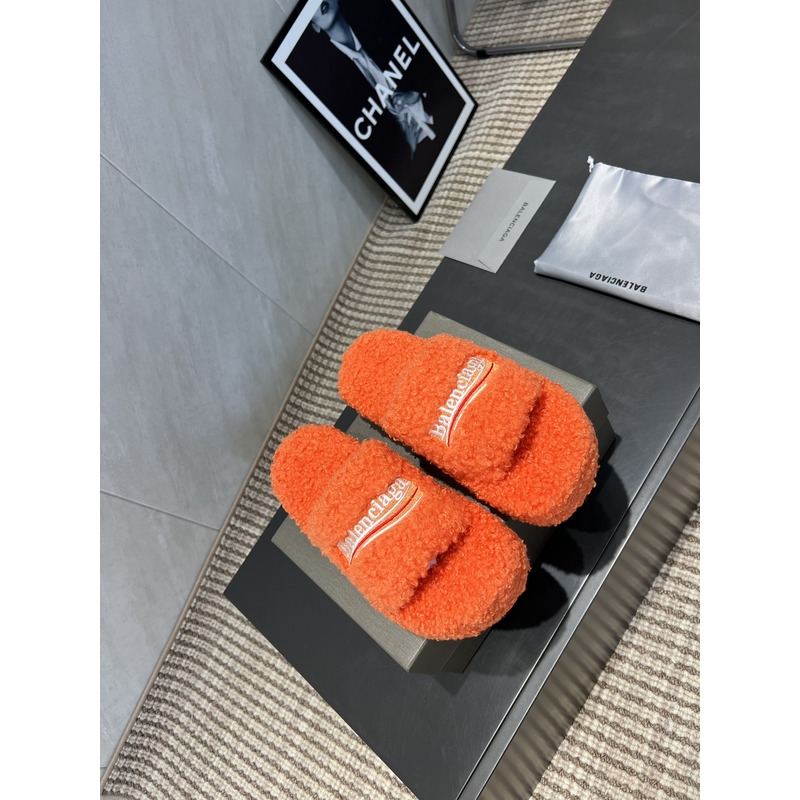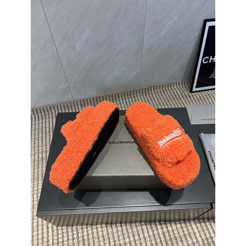 Balenciaga Furry Slide Sandal In Orange