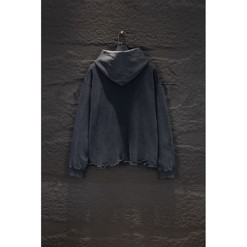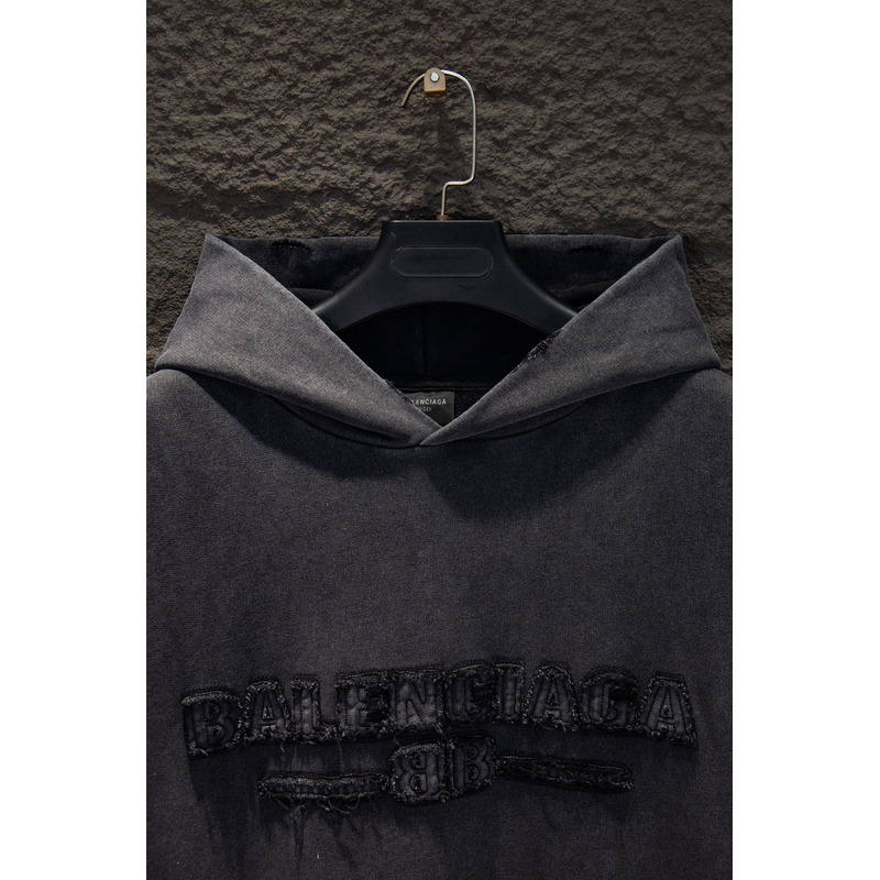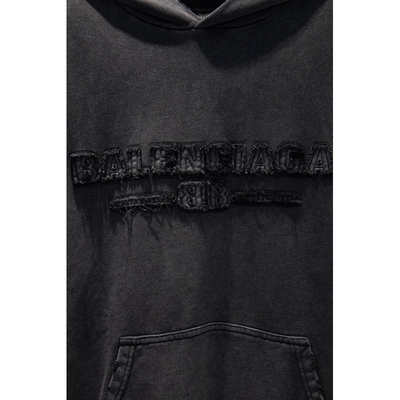 Balenciaga Logo - Embellished Distressed Hoodie In Dark Grey
