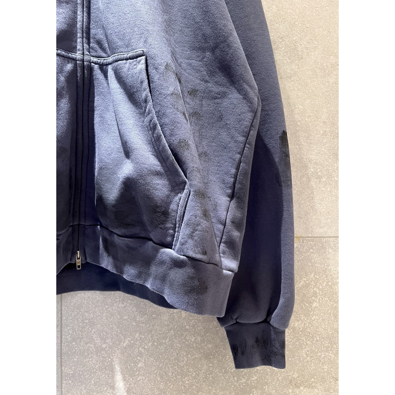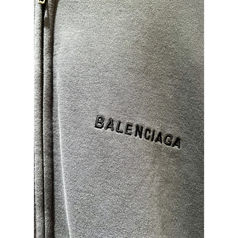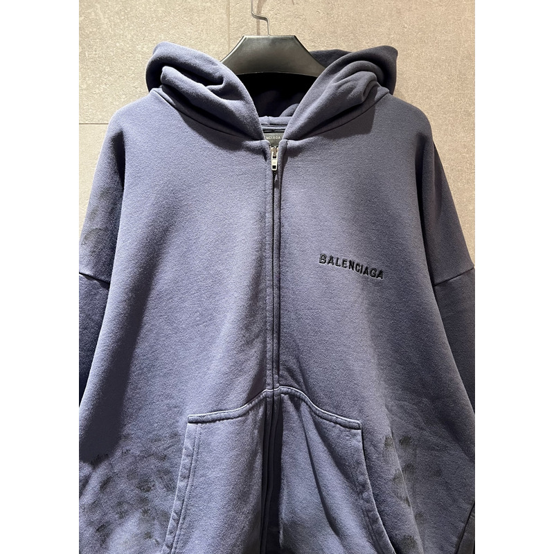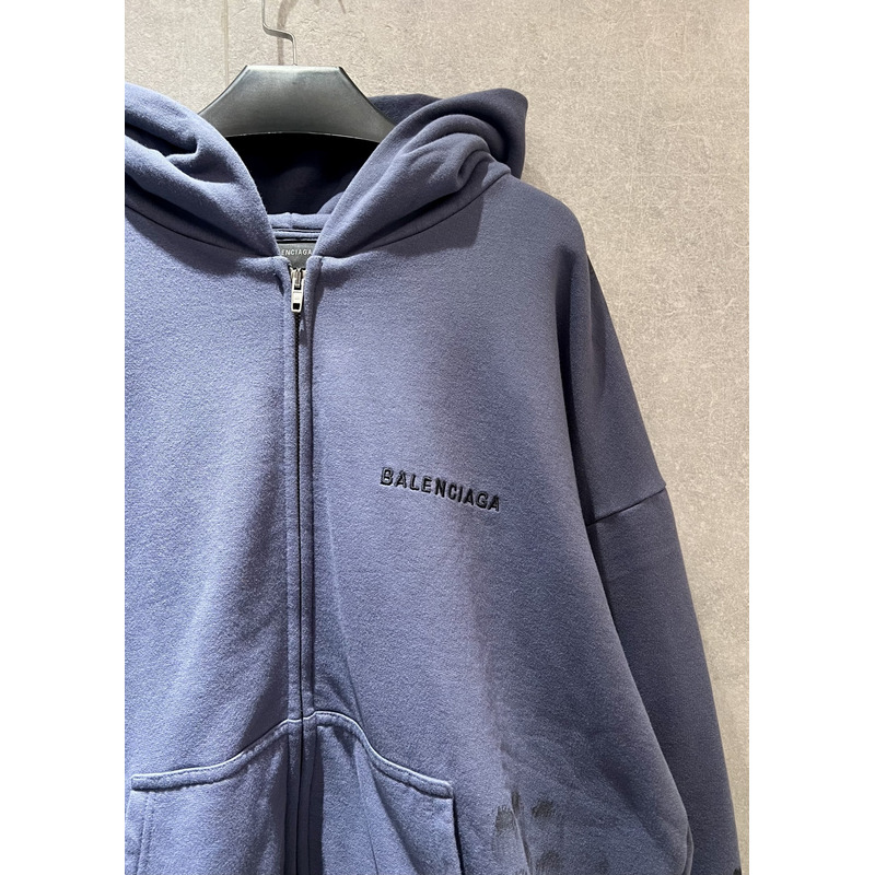 Balenciaga Logo Zip-Up Cotton Hoodie In Blue