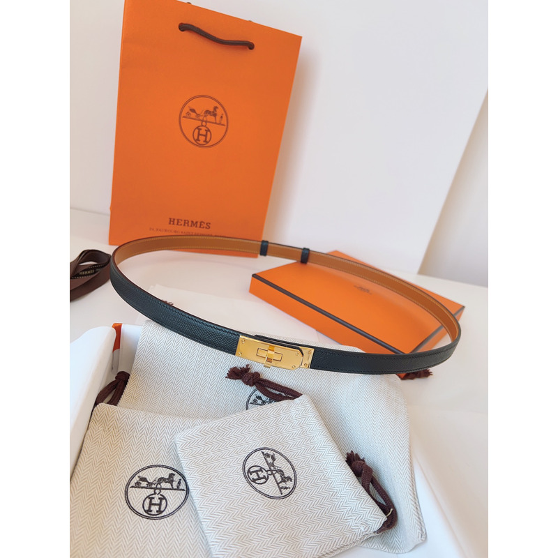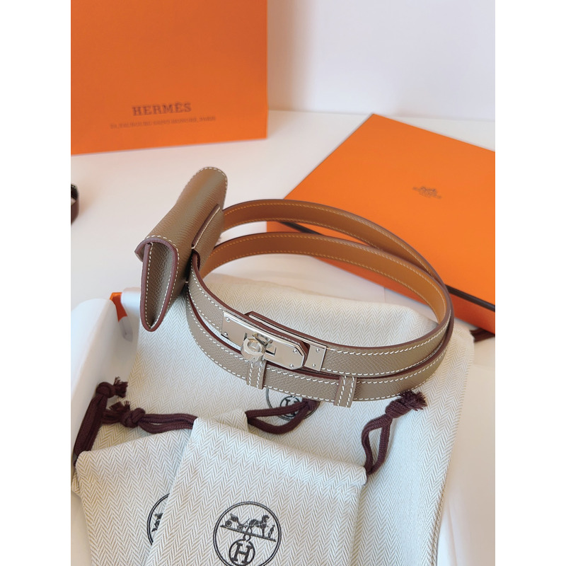 Hermes Kelly 18 Gold Hardware Belt In Light Grey