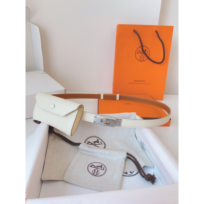 Hermès Kelly Pocket 18 Belt With Pouch Epsom Calfskin White