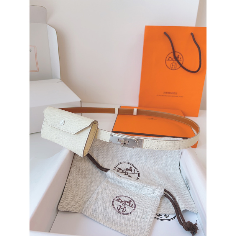 Hermès Kelly Pocket 18 Belt With Pouch Epsom Calfskin White / Silver