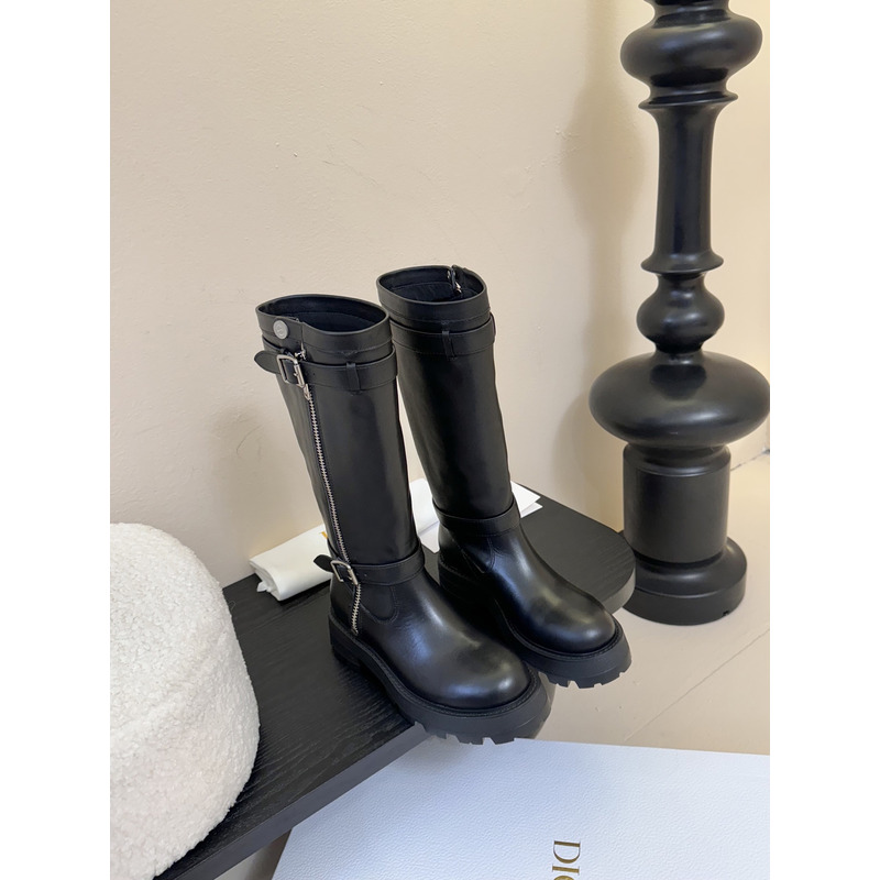 Dior D-Major Boots In Black Calfskin, Khaki And Black Tech Fabric