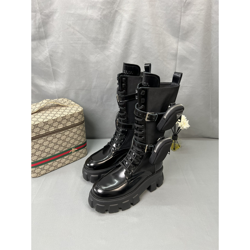 Prada Monolith Boots In Brushed Leather And Re-Nylon