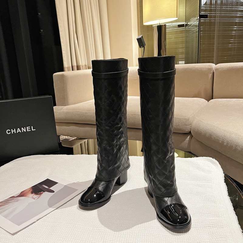 Chanel Quilted Block-Heel Trouser Boots In Black