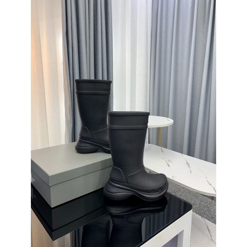 Balenciaga X Crocs Mid-Calf Boots In Rubber Black