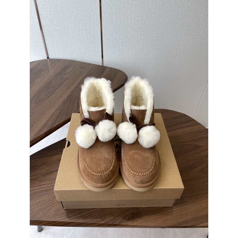 UGG Brown Suede Shearling-lined Ankle Boot With Pom-poms