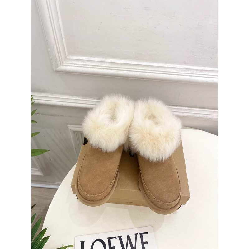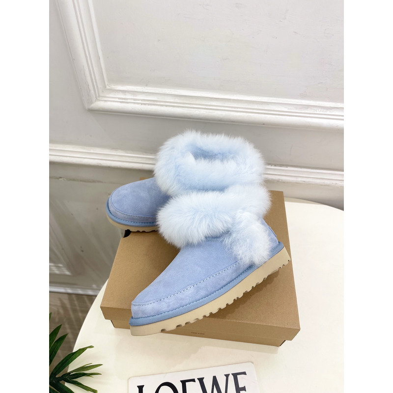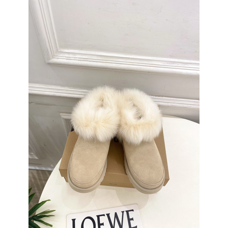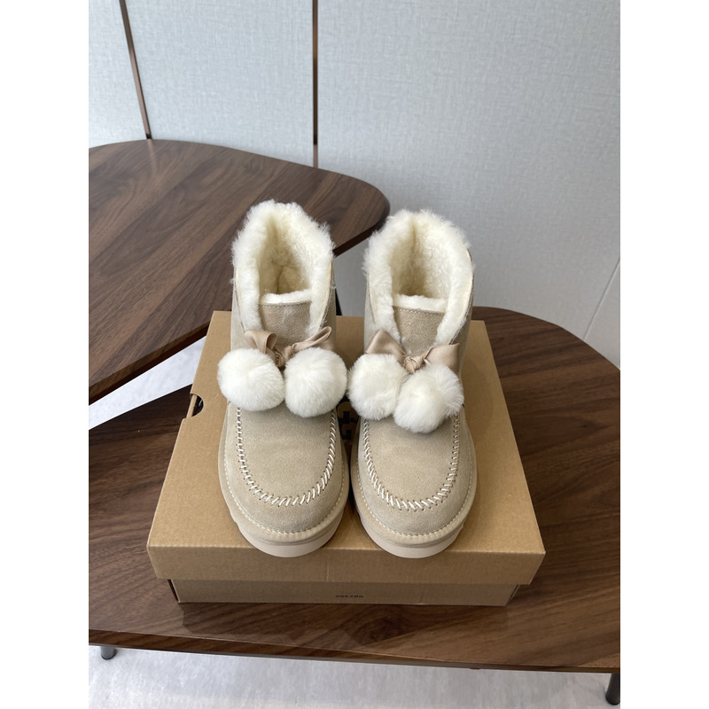 UGG Beige Suede Shearling-lined Ankle Boot With Pom-poms