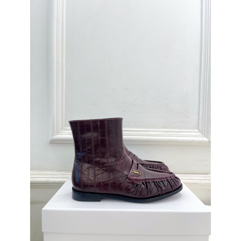 Saint Laurent Chestnut Leather Loafer Ankle Boot