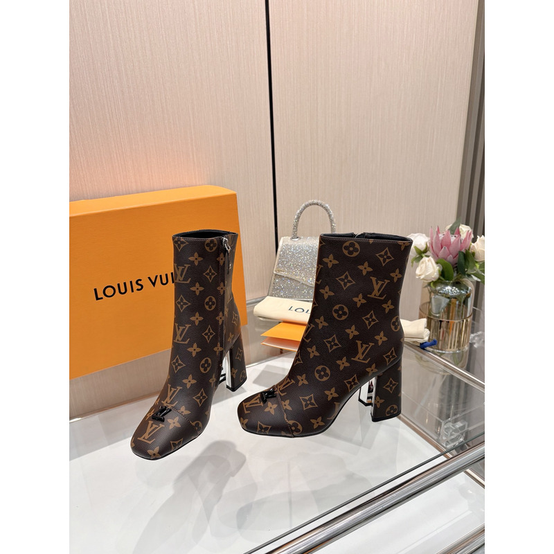 Louis Vuitton Mid - Heel Swing Platform Ankle Boot Light Brown Monogram