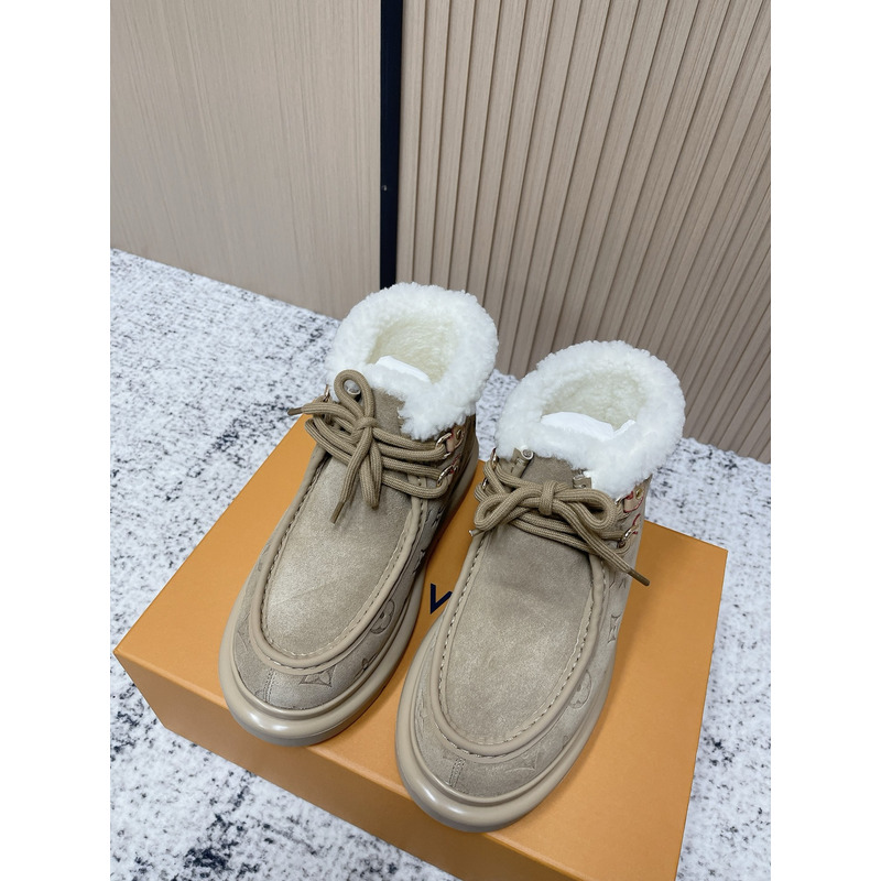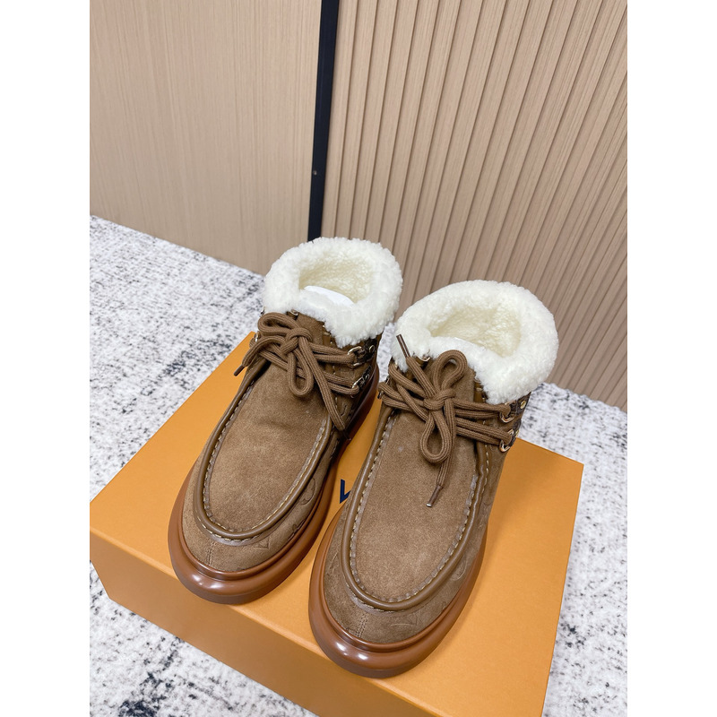 Louis Vuitton LV Cloud Lace-Up Ankle Boot In Monogram Brown With Fur