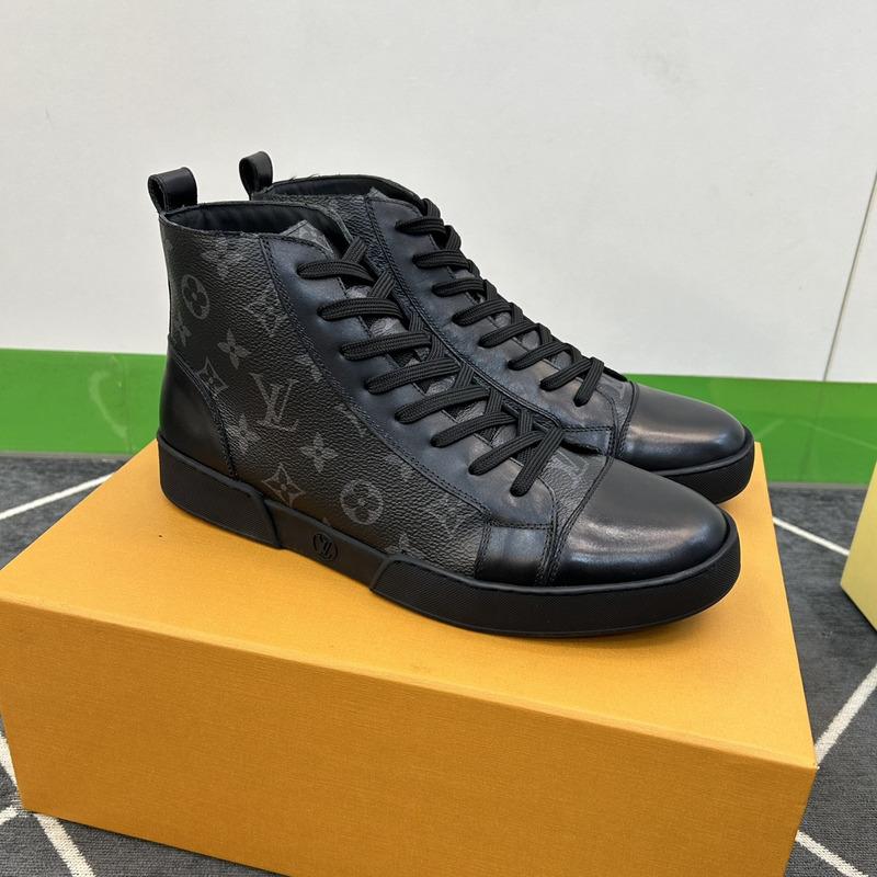 Louis Vuitton High-Top Sneaker Black Embossed Leather With LV Detail