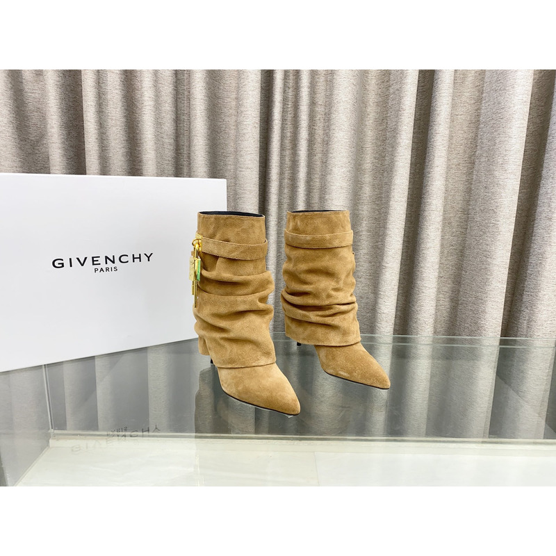 Givenchy Shark Lock Biker Ankle Boots In Suede Brown