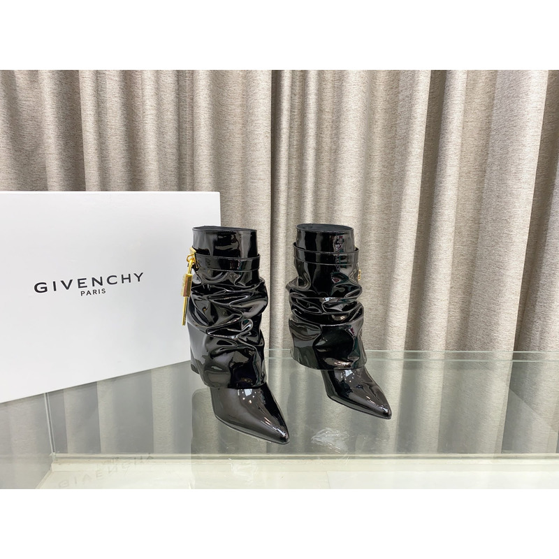 Givenchy Shark Lock Biker Ankle Boots In Patent Leather Black